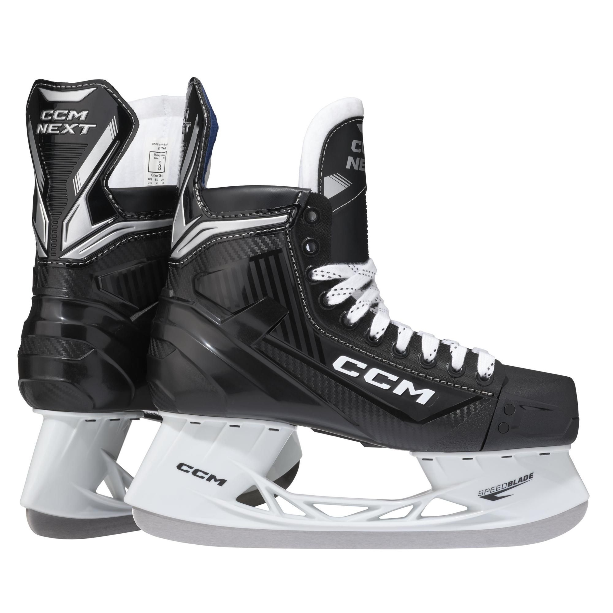 Perfect for pick-up on the pond or a lap around the lake, the CCM NEXT skate delivers enhanced comfort at an unbeatable price. Its 3D-injected construction is ergonomically shaped for a great fit and finished off with new comfort padding at the boot cut. Throw in the improved ankle foams with soft liners, and your feet will feel great no matter where you’re skating or playing.