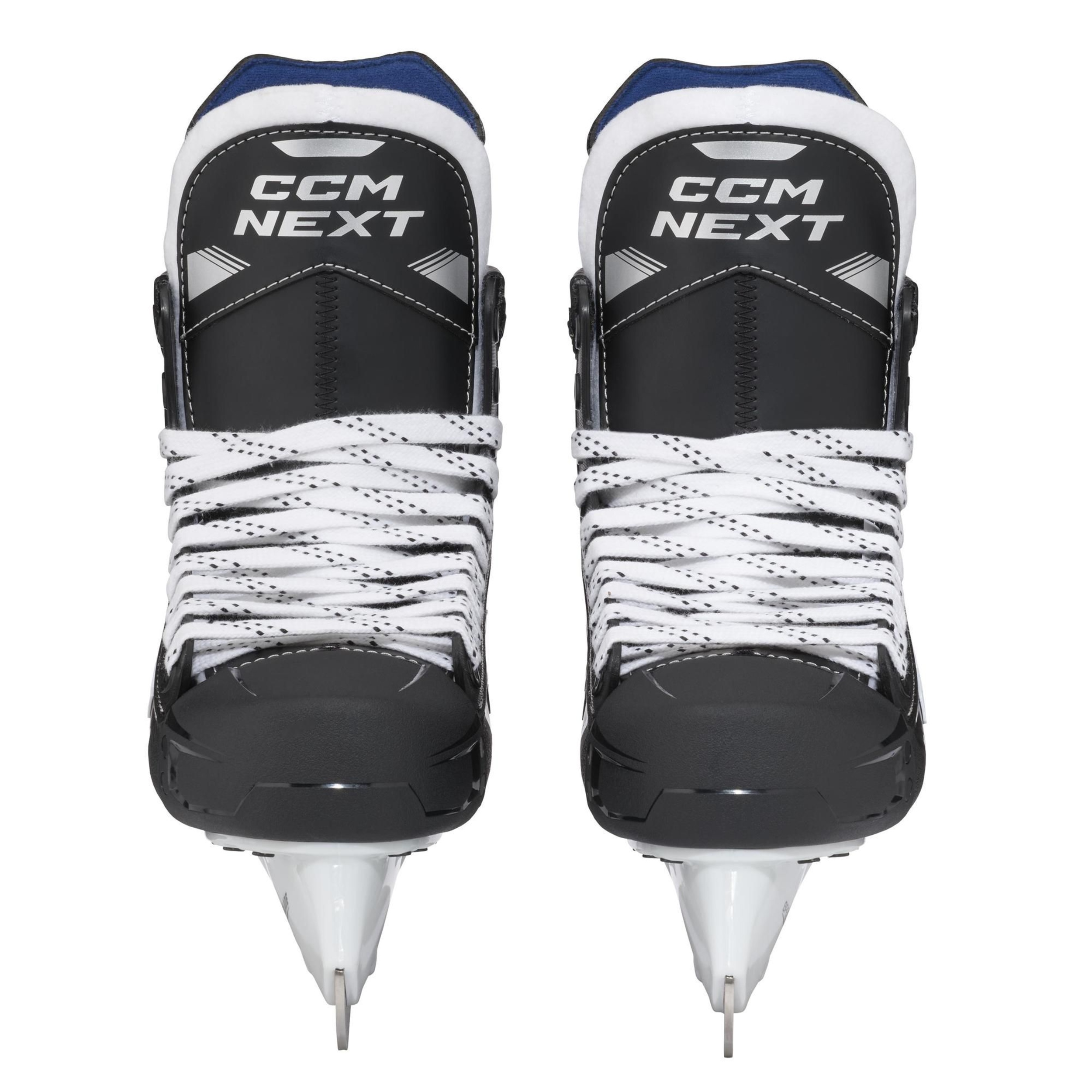 Perfect for pick-up on the pond or a lap around the lake, the CCM NEXT skate delivers enhanced comfort at an unbeatable price. Its 3D-injected construction is ergonomically shaped for a great fit and finished off with new comfort padding at the boot cut. Throw in the improved ankle foams with soft liners, and your feet will feel great no matter where you’re skating or playing.