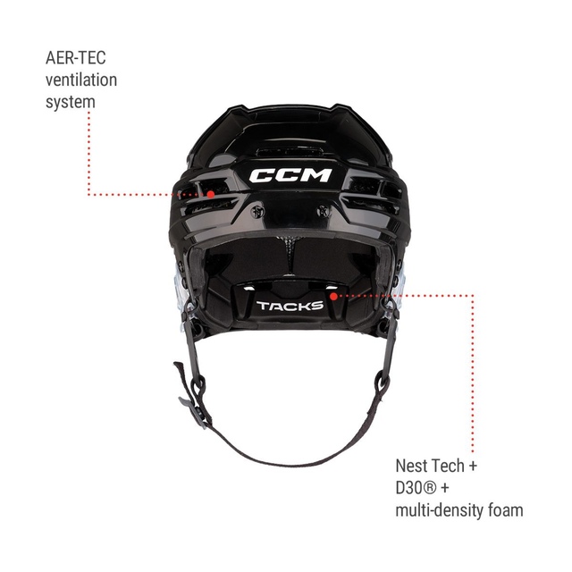 Self-adjusting occipital support and an easy front-to-back side adjustment provide a customized snug fit that stays in place