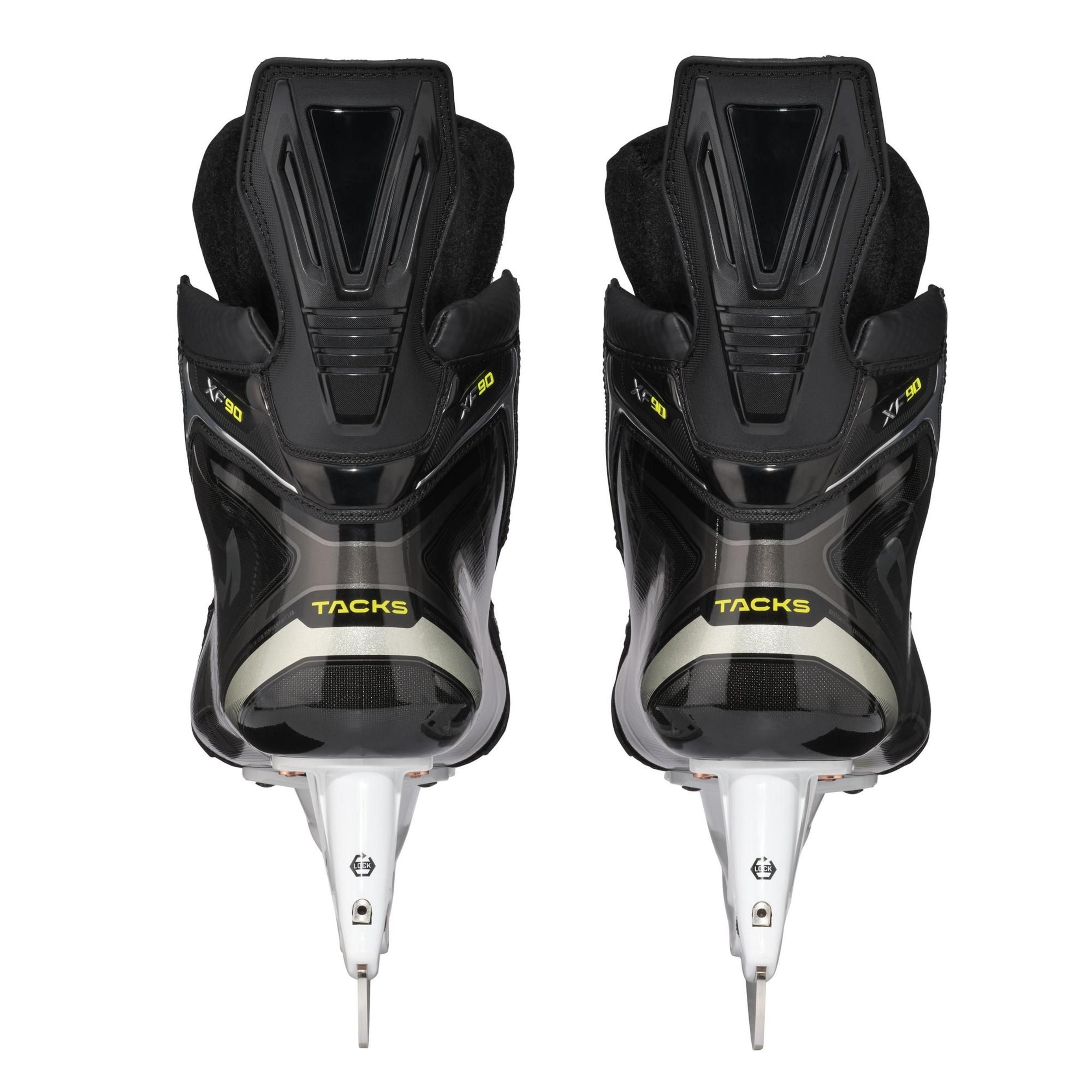 Packed with features specifically engineered to enhance performance, comfort, and style, the TACKS XF90 skate delivers incredible value for competitive players. Composite one-piece boot construction, with improved forefoot wrap and multi-density memory foam ankle pads, provides incredible fit and comfort, so you can feel your best and play your best. Equipped with STEP Steel and the Flex Tendon 3.0 to give you the advantage over your opponent on every single stride.