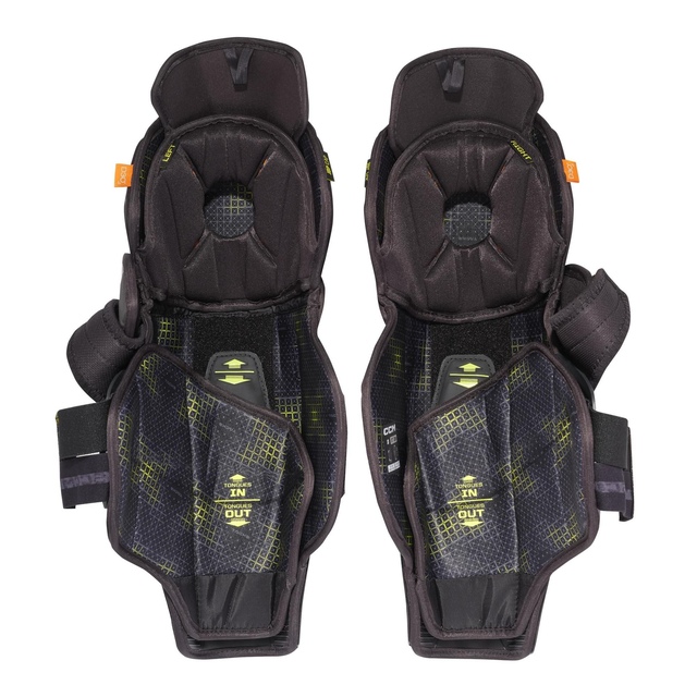 The entire calf guard is adjustable with a removable ADPTFIT liner + detachable lower pad for tongues in option: Bottom removable liner to customize your fit if you prefer to wear your skates tongues in, for closer-to-the-leg snug protection