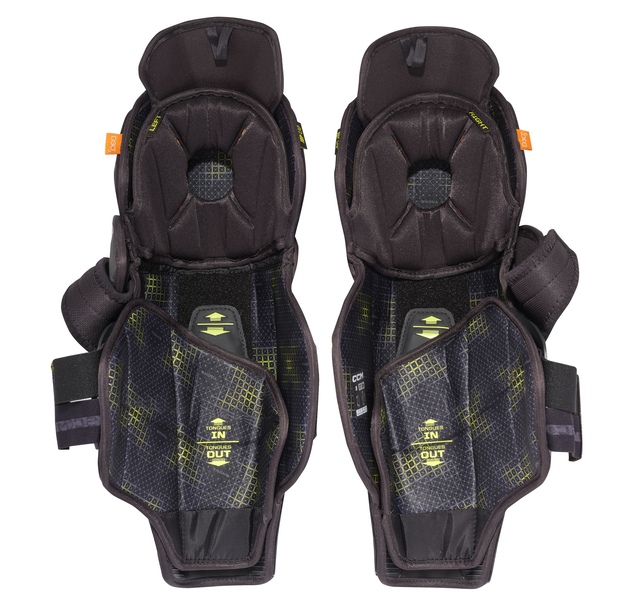 The entire calf guard is adjustable with a removable ADPTFIT liner + detachable lower pad for tongues in option: Bottom removable liner to customize your fit if you prefer to wear your skates tongues in, for closer-to-the-leg snug protection