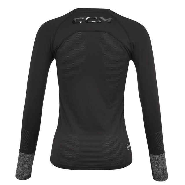 The CCM Women's Wrist Protection Baselayer Long Sleeve Top is designed to keep you protected and comfortable. It features cut-resistant fabric at the neck, chest, and wrists, providing BNQ-certified protection where it matters most. Built with lightweight, breathable materials, it keeps you cool with AER-TEC TOTALDRI panels. A fitted yet relaxed design ensures ease of movement, while silicone grips prevent slippage.