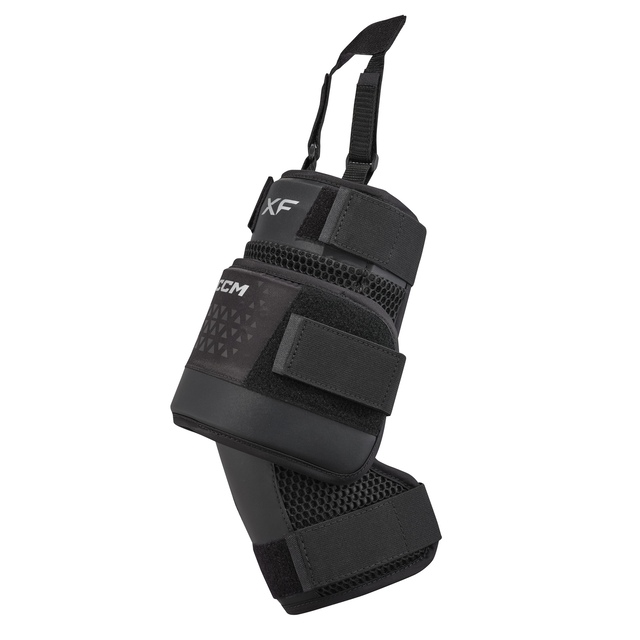 Inspired by the biomechanics of elite goalkeepers, the XF knee pads are designed to accommodate dynamic movements of goaltending. A three-piece design provides a stable fit while allowing coverage to stay in place as it adapts to the shifting movements of the knee and leg. Moulded HD foams provide protection, and the asymmetrical design contributes to more strategic coverage and mobility. A new breathable, padded liner ensures full comfort with each drop into the knee cradle.