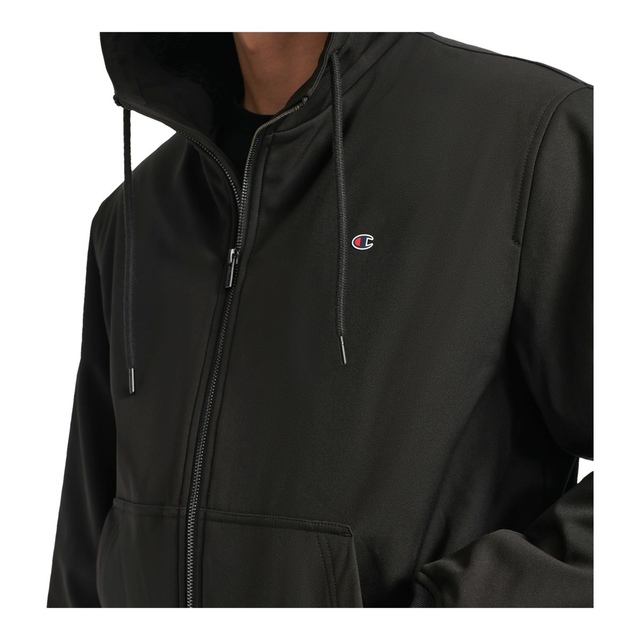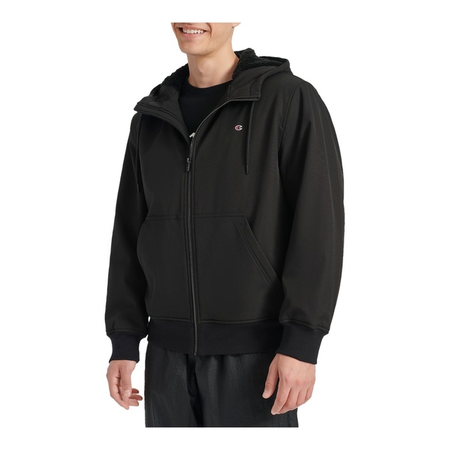 The Champion Men's Classic Hooded Bomber Jacket delivers iconic style with a sporty edge. This hooded jacket features a cozy Sherpa lining for superior warmth and comfort. The ribbed knit waistband and cuffs provide a snug, flexible fit. Complete with the iconic Champion logo at the chest for classic branding. This is a versatile outerwear choice for laidback everyday wear.