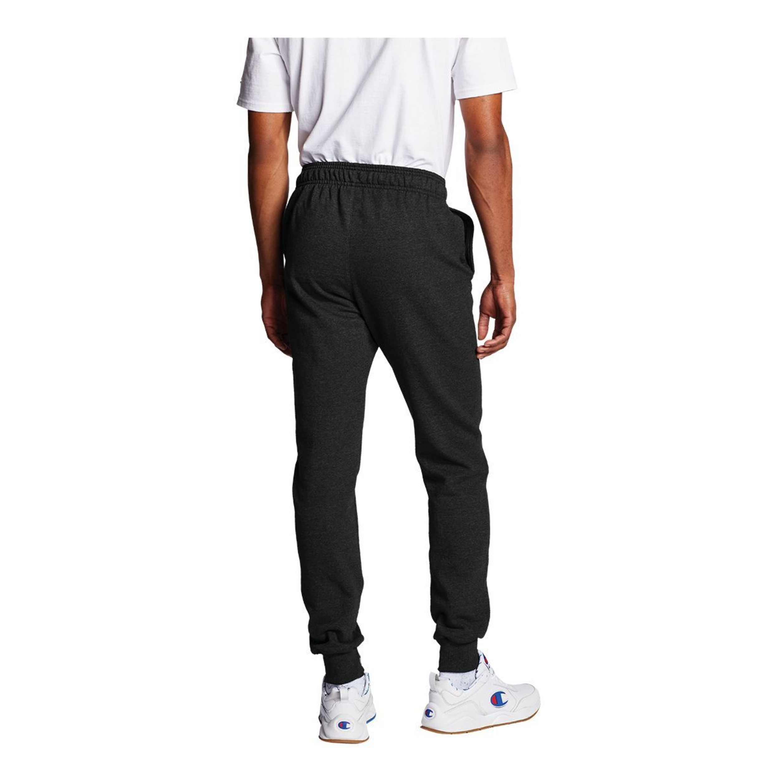 Champion Men's Graphic Powerblend Sweatpants are the easy path to instant leisure. Crafted from a 9 oz cotton-poly blend, these warm fleece joggers feature durable extra stitching and a snug waistband with a flat drawcord. Ribbed cuffs and side pockets provide a detailed profile.