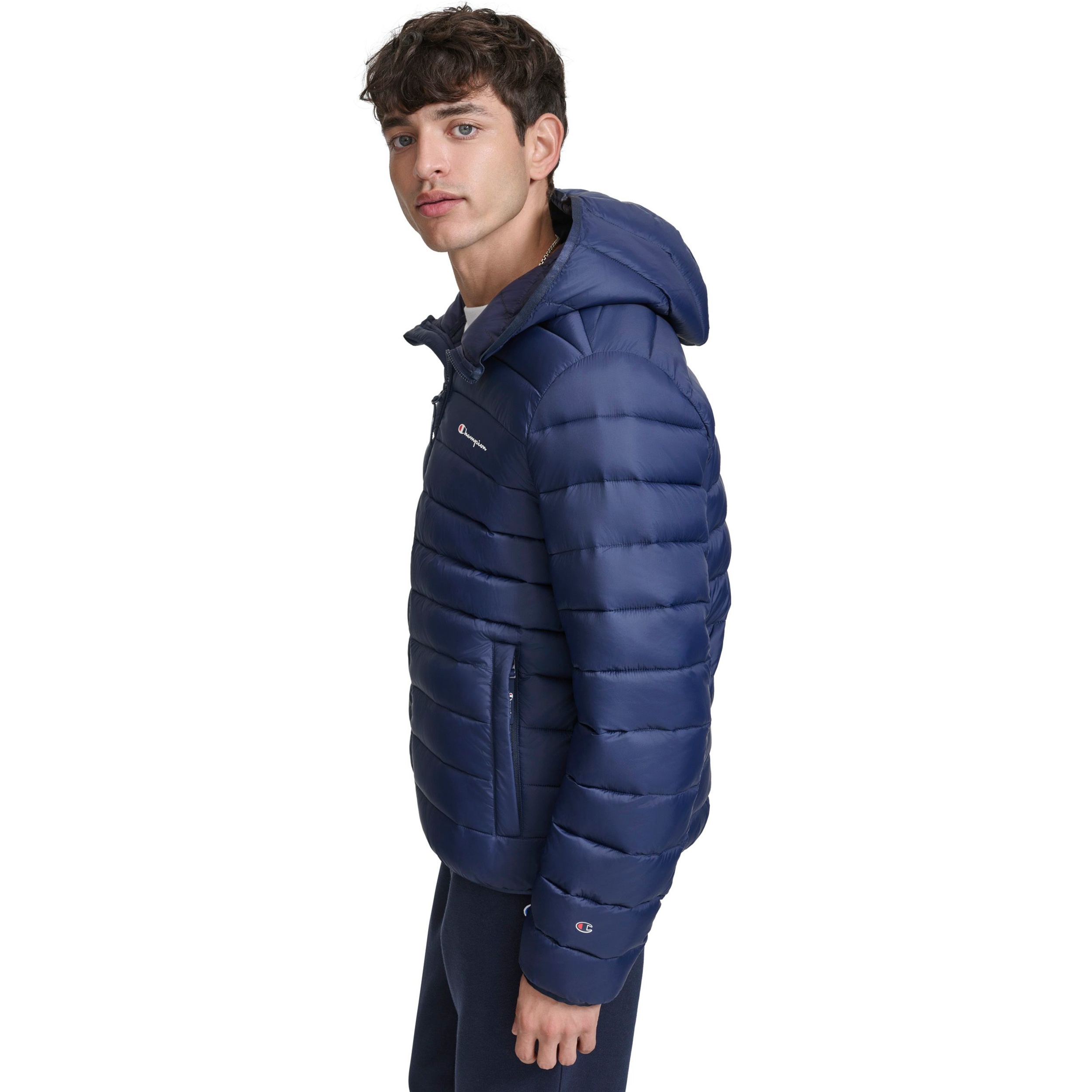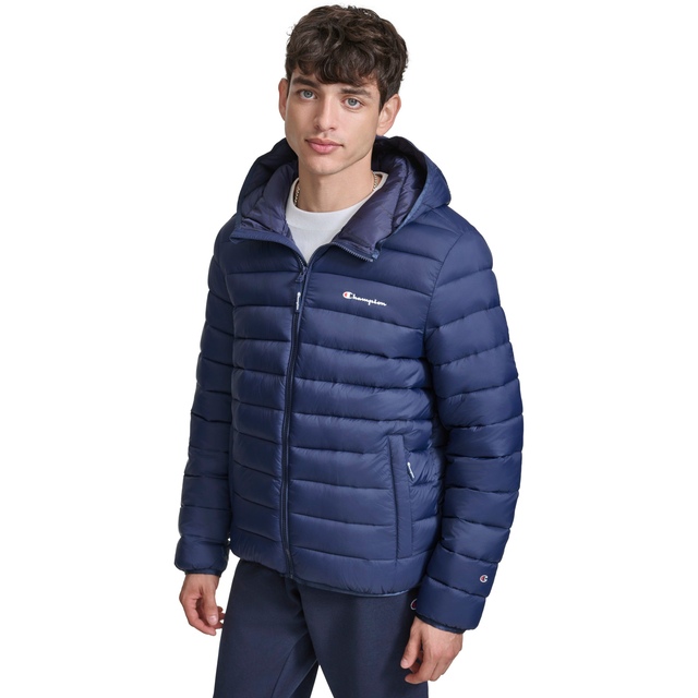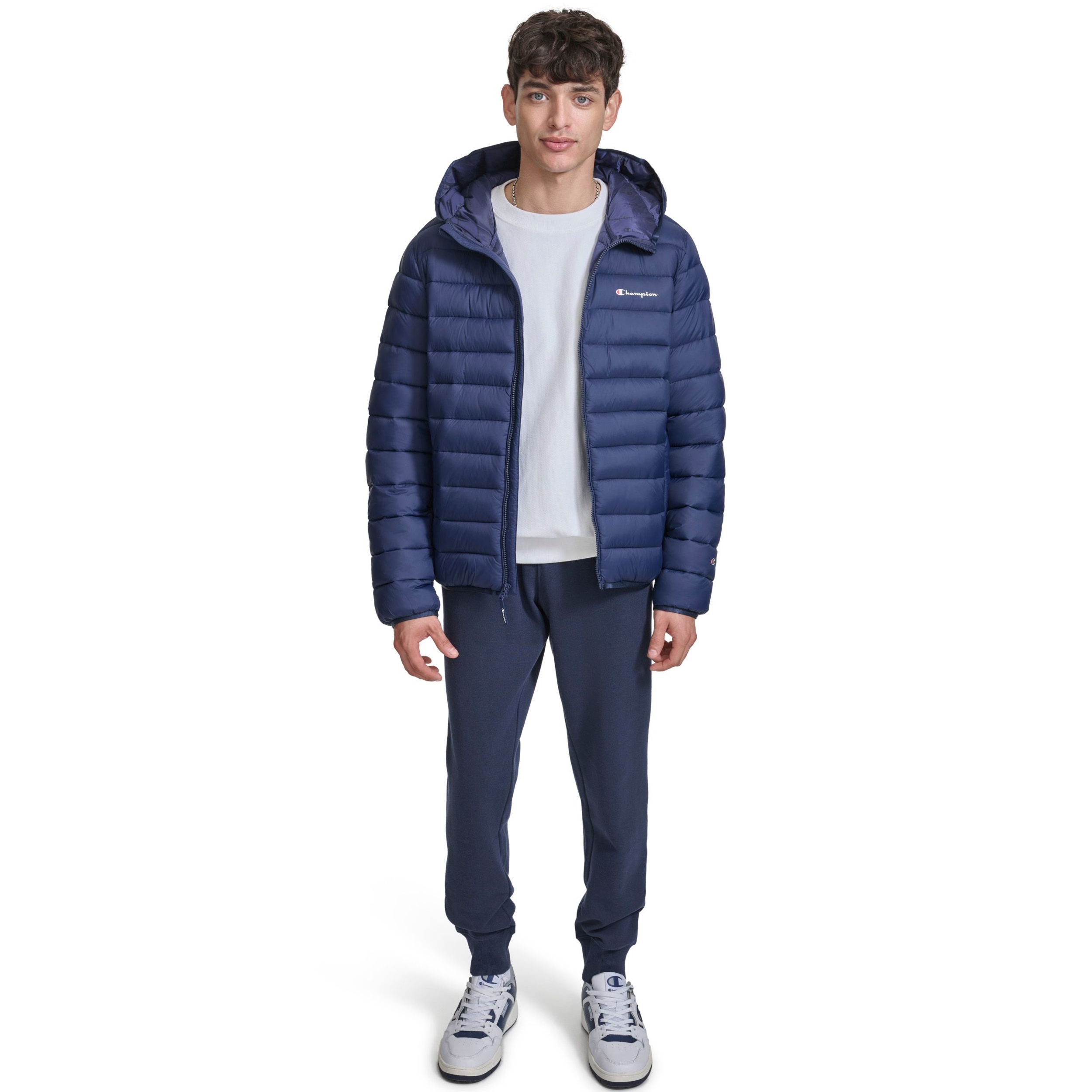 The Champion Men's Quilted Transitional Hoodie is a versatile jacket that combines warmth and style. Crafted with a quilted design, this hoodie offers cozy comfort during transitional weather. The iconic Champion script logo adorns the chest, showcasing the brand's heritage. Two handy zip pockets keep your essentials secure, while the elastic cuff detail ensures a customized fit. Perfect for layering or wearing solo, this transitional hoodie is a must-have for the modern man's wardrobe.