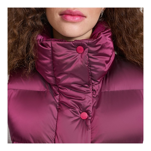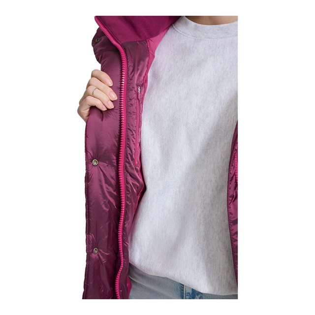 The Champion Women's Puffer Vest is a stylish and functional cold-weather essential. This quilted vest features a cozy fleece lining that traps warmth, while the stand collar blocks drafts. A front zipper closure with snap placket provides extra coverage. Two lower welt pockets and an interior zipper pocket offer convenient storage for essentials. A signature Champion logo patch at the bottom right adds an iconic brand touch to this versatile winter vest.