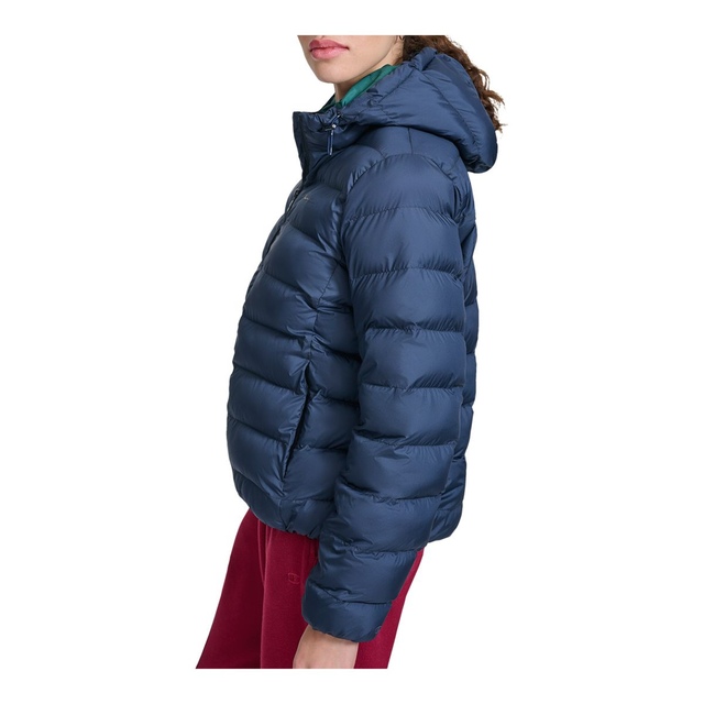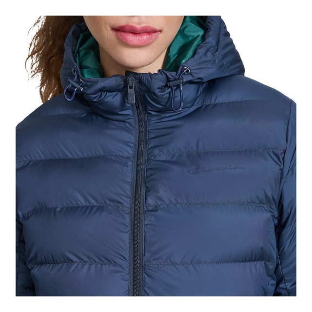 The Champion Women's Quilted Insulated Hooded Jacket offers premium warmth and functionality. This quilted jacket features insulating fill for cozy warmth without excess bulk, and an attached hood with adjustable drawcord customizes coverage. Two lower zipper pockets provide secure storage, while the packable design allows easy carrying when not in use. A front zipper closure ensures easy on/off, and Champion branding delivers trusted quality.
