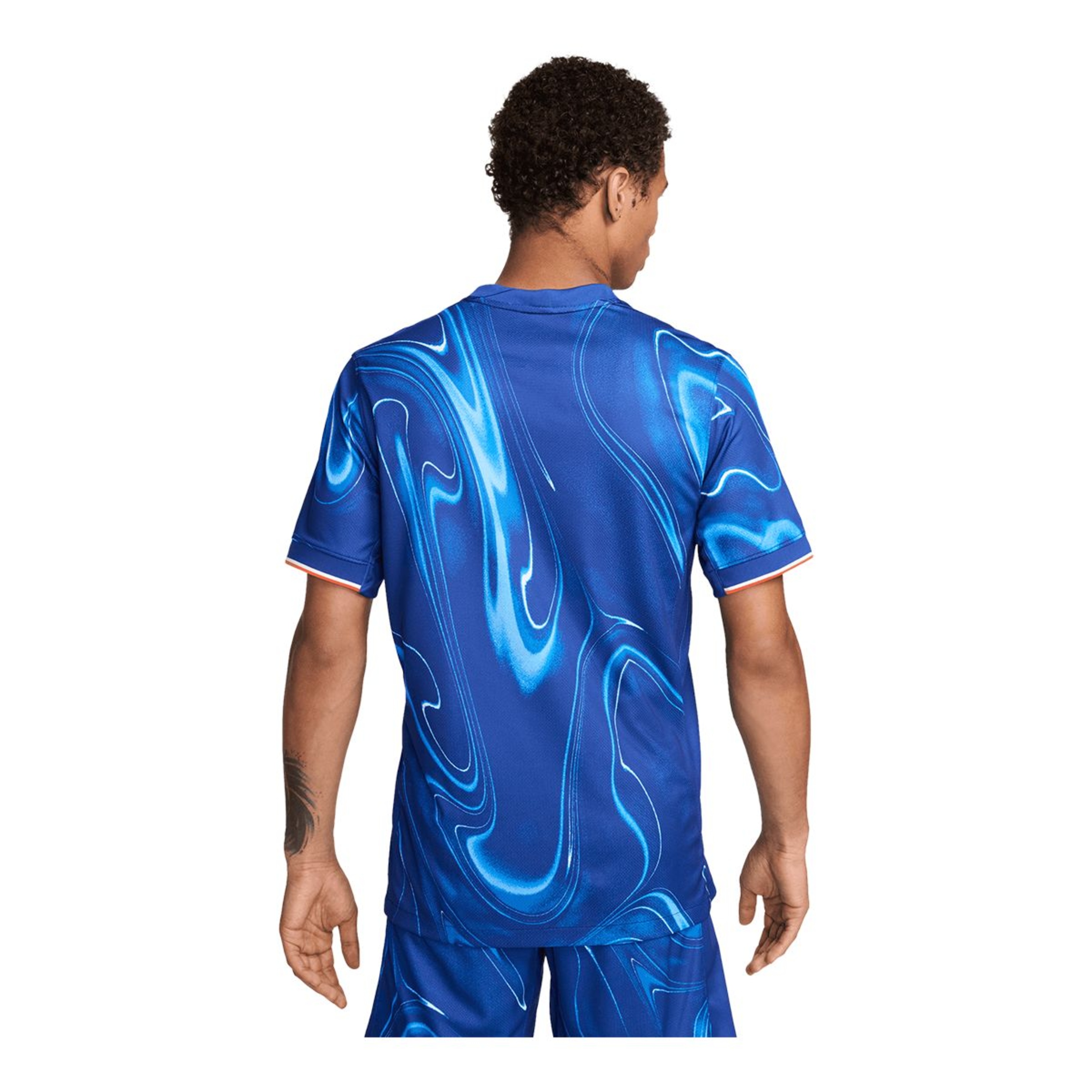 The Chelsea F.C. Nike Replica Home Jersey offers the look of the team's authentic jersey with sweat-wicking technology. Modeled after what Chelsea F.C. players wear on the pitch, this polyester jersey features Nike's Dri-FIT technology to help keep you dry and comfortable during football matches or workouts.