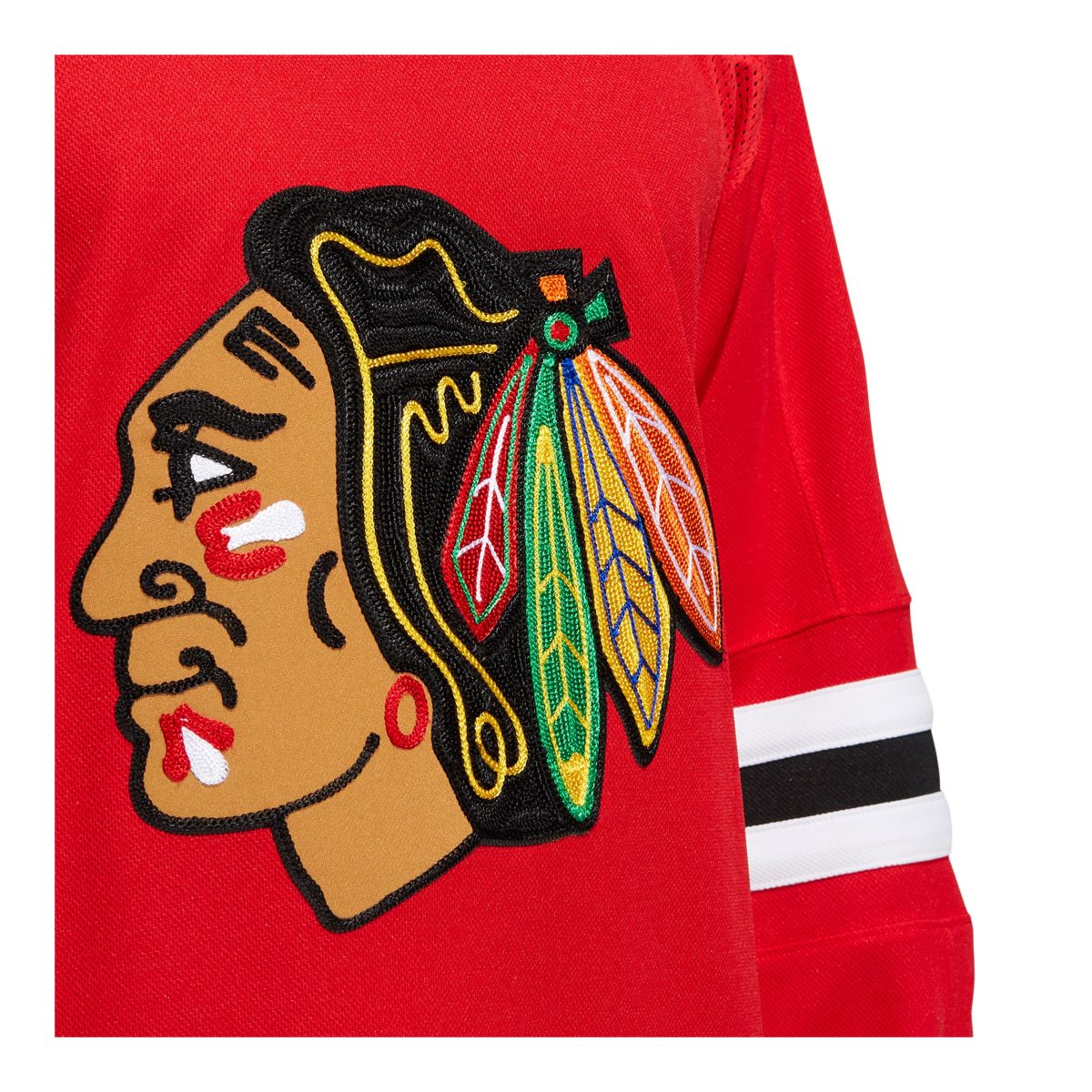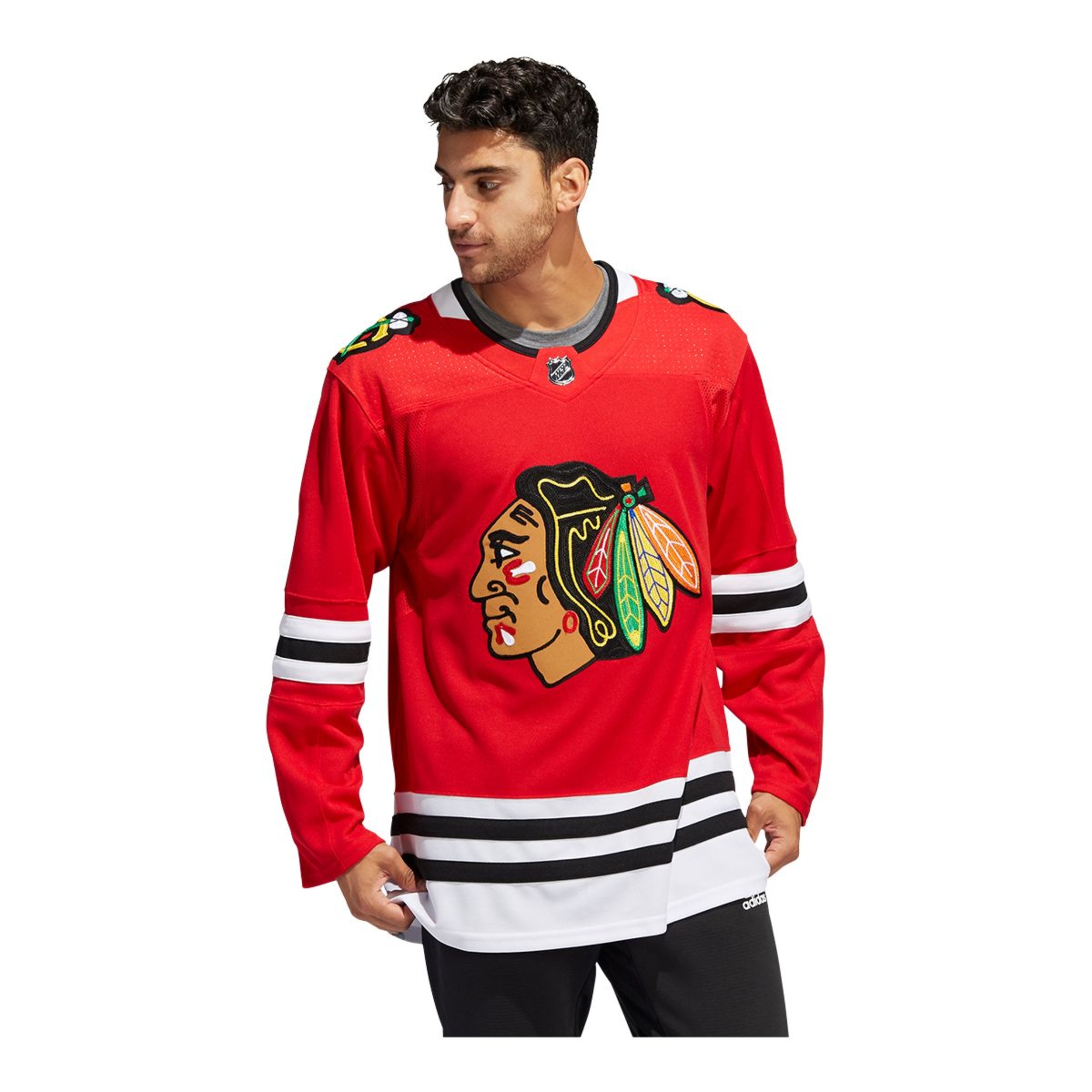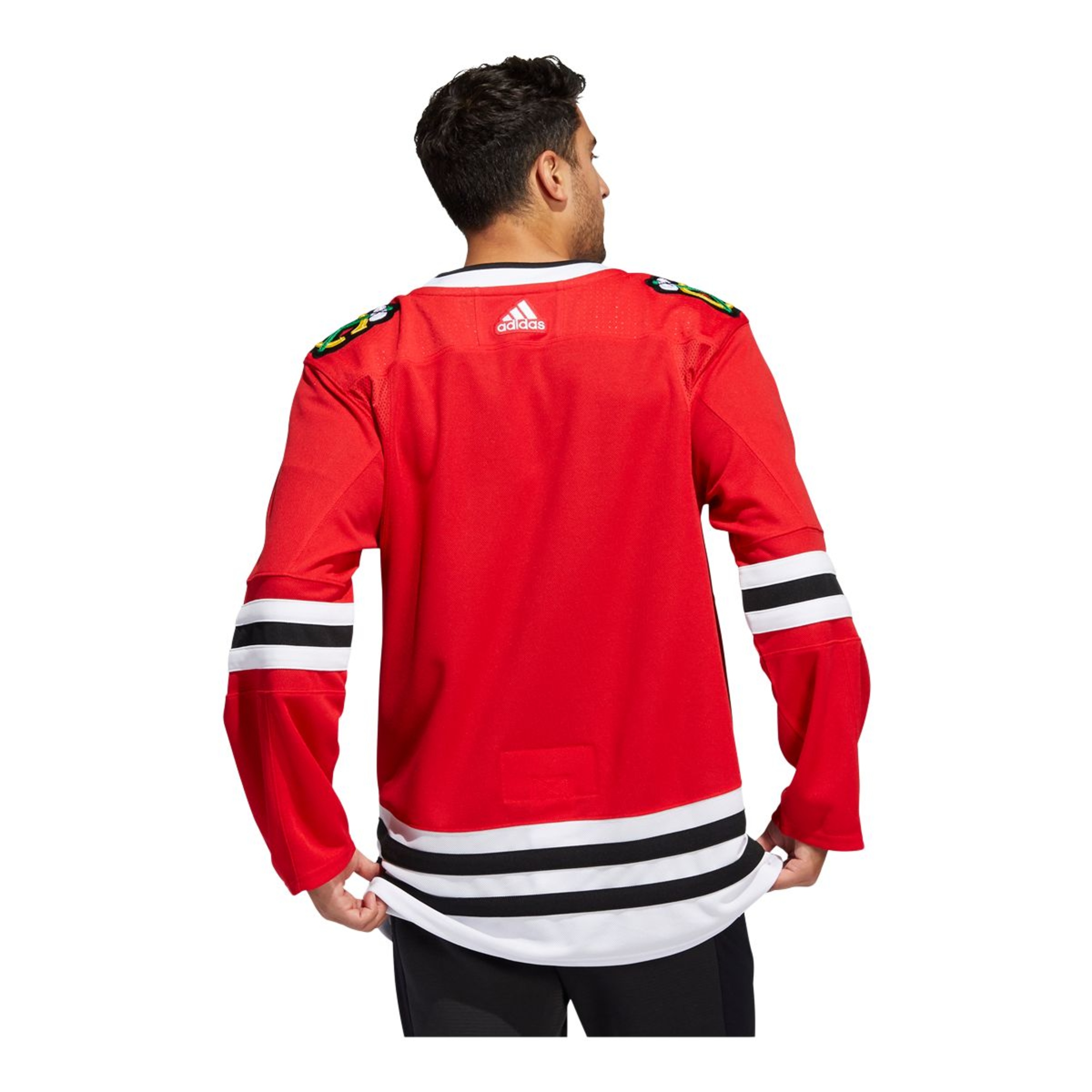 Stroll around the Windy City with your Chicago Blackhawks pride in full view in this adidas authentic home game jersey. AEROREADY keeps you cool as you pick up supplies for tonight's tailgate party. A mesh underarm insert adds extra breathability when the hot sauce on the wings kicks in. This product is made with Primegreen, a series of high-performance recycled materials.