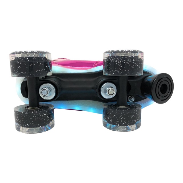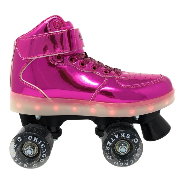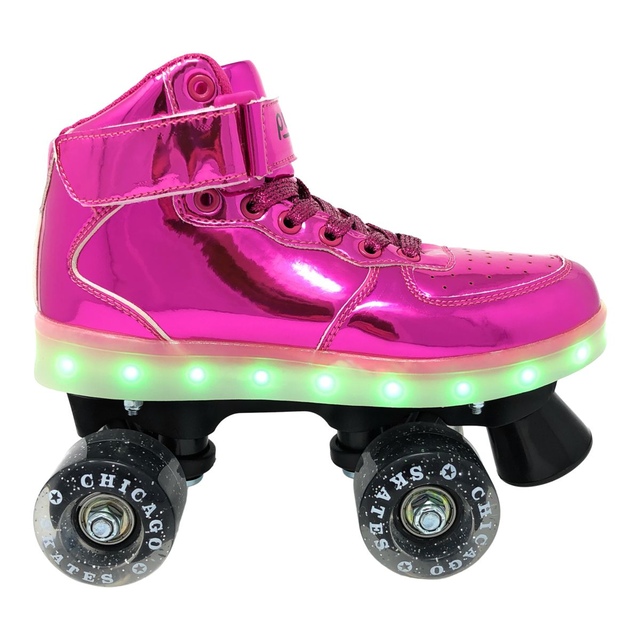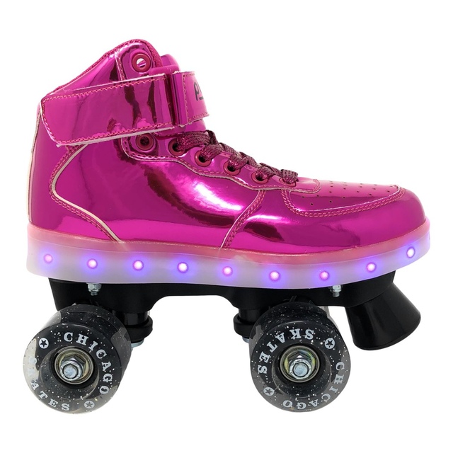 Stand out in the innovative Chicago LED Light up Roller Skates. 6 flashing modes and 7 different colours make these roller skates a must-have for nighttime skating. The high top boot supports your ankles, and the Velcro power strap provides optimum safety and lock down the fit, making it extremely comfortable and secure for your feet. With high rebound urethane wheels, these roller skates provide traction and control, and ABEC bearings make your ride smooth and fast.