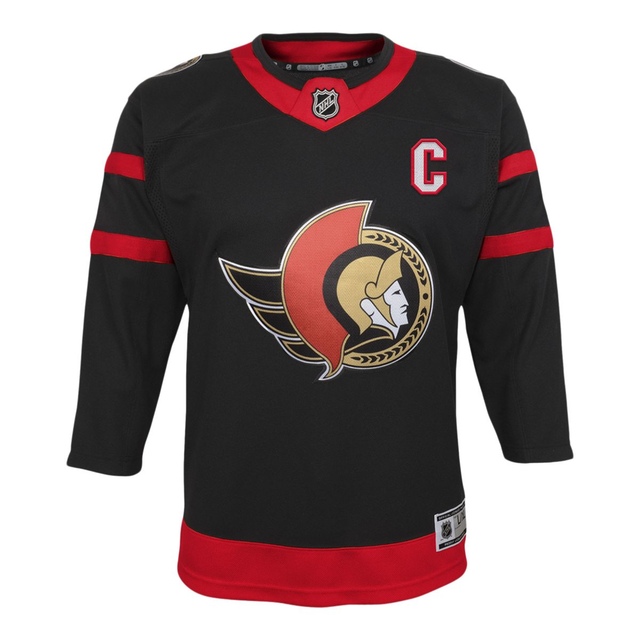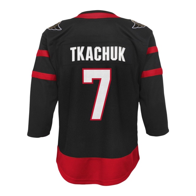 The Ottawa Senators NHL Premier team color black home jersey provides an iconic and bold look. Design, color, and fabrication that pays tribute to the Sens history. Complete with Brady Tkachuk #7 name and number. This is a must have jerseys for any young Sens fan. Officially licensed bythe NHL and NHLPA. Child 4 to 7 size range.
