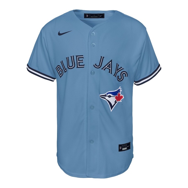 Every little kid will get excited for the big Jays game in this Toronto Blue Jays Nike child sized Bo Bichette powder blue Alternate player jersey. The Blue Jays team colours and authentic graphics make this jersey a must-have for any young fan.