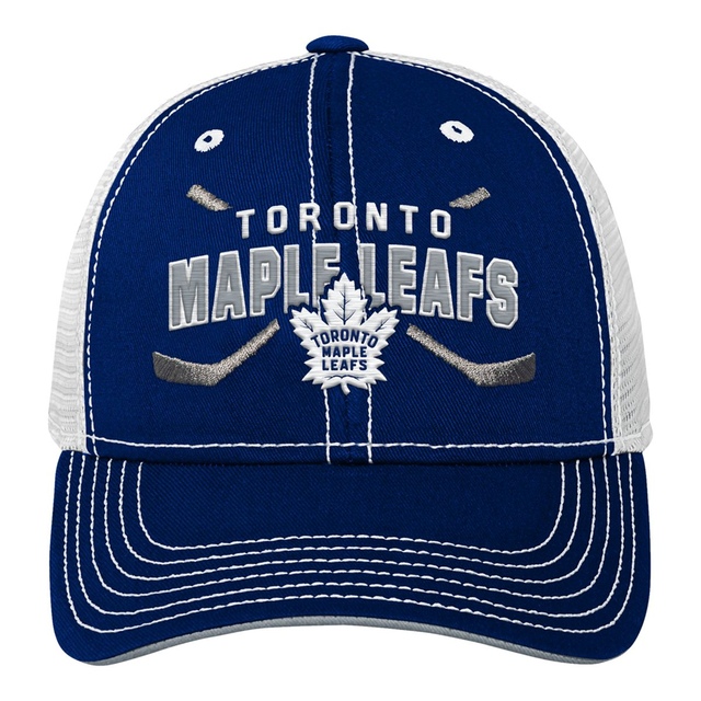 The NHL Lockup Trucker Cap is the perfect hockey adjustable meshback cap for any young Toronto Maple Leafs fan. Team color front with team name and logo embroidered lock up. Poly meshback with adjustable closure. NHL Shield back hit for authentication. Kids sizing.