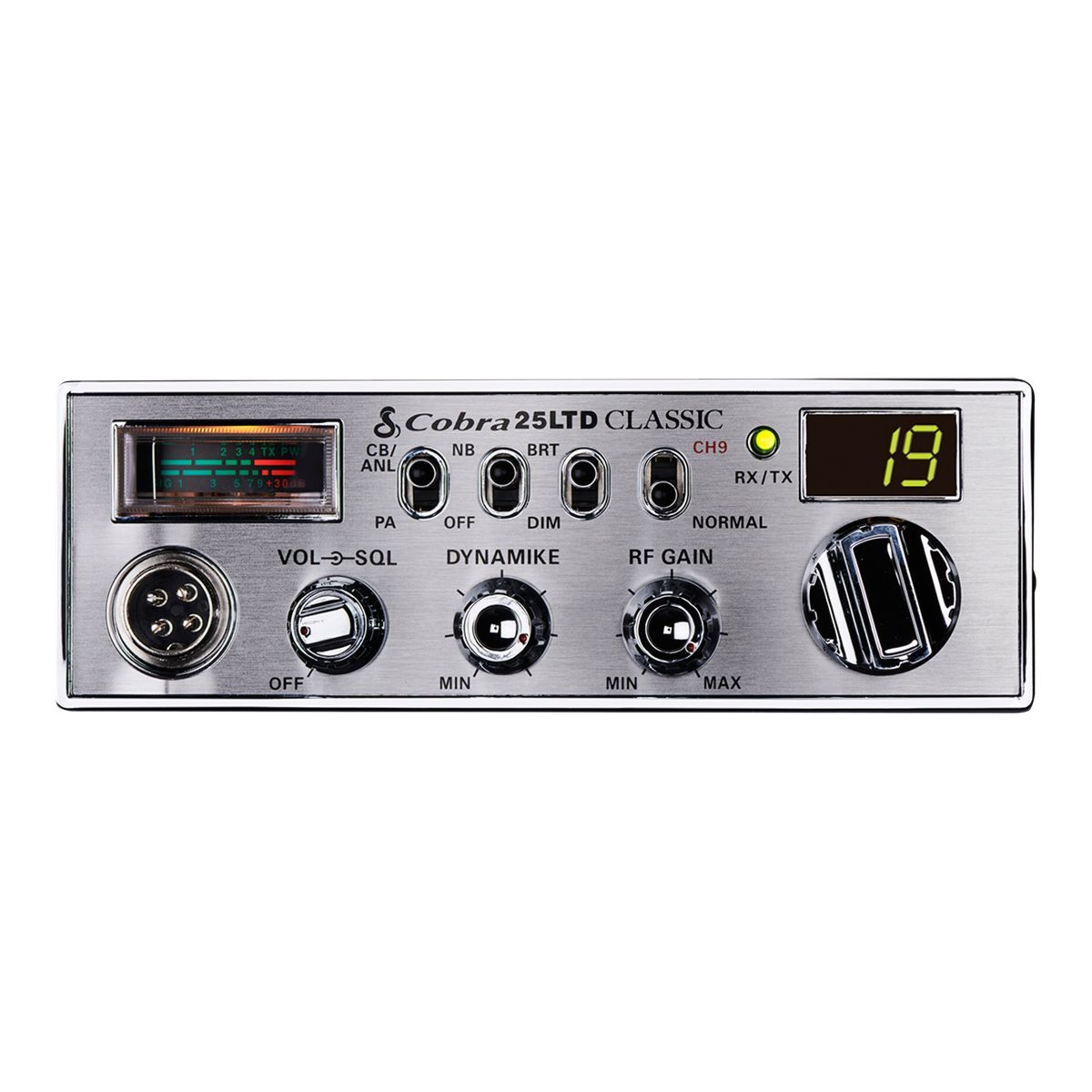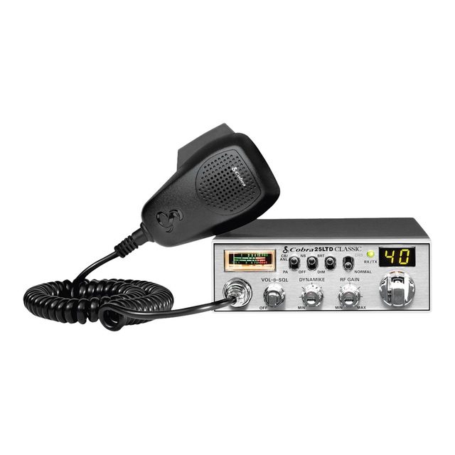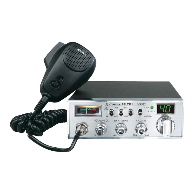 The 25 LTD Classic is rugged professional full featured CB radio with professional-driver requested improvements. The 25 LTD Classic has taken the professional's advice and made some useful improvements. This includes the front panel microphone connector which makes in-dash installation a cinch. Cobra has also provided a nine foot microphone cord so that you keep in touch just about anywhere in the cab.