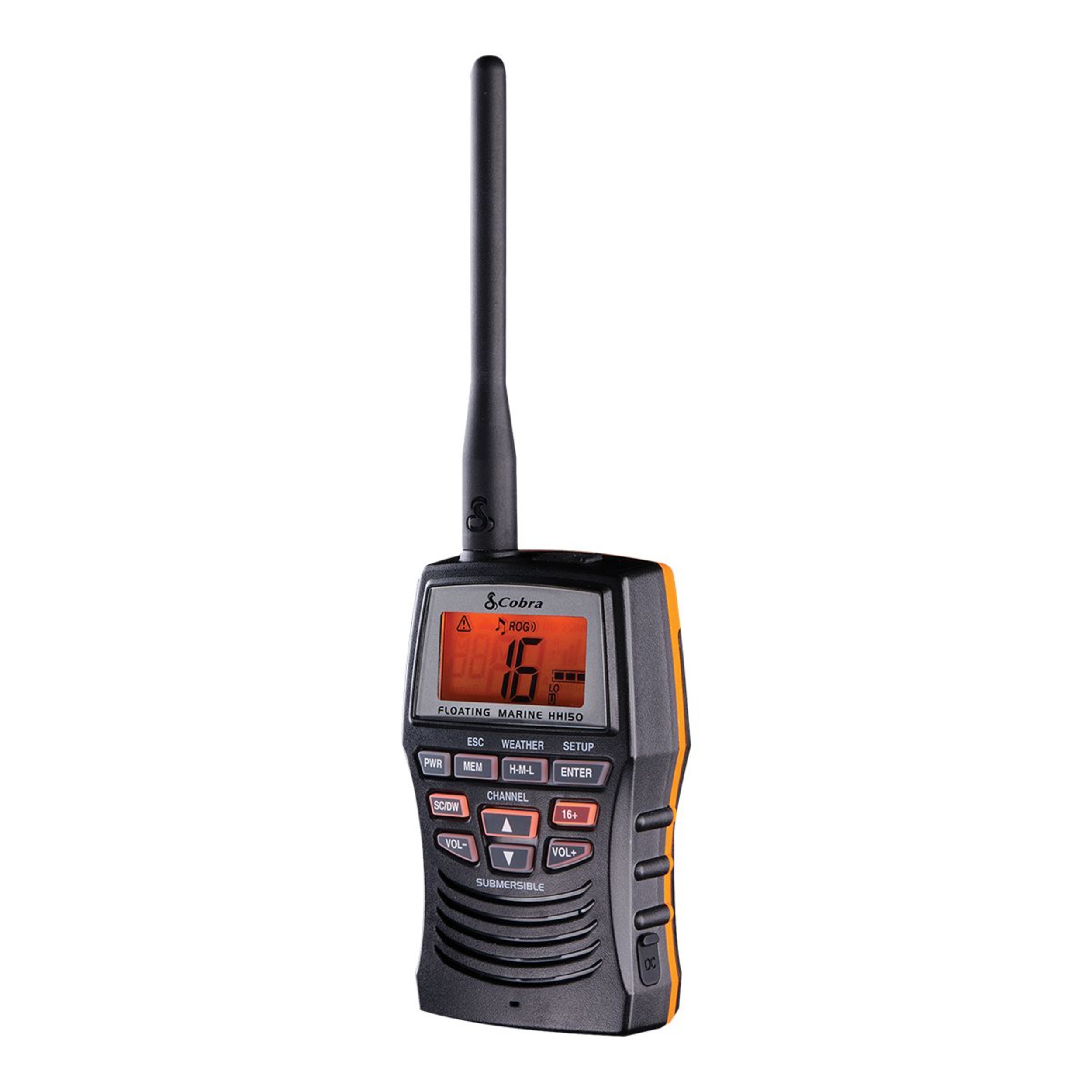 The Cobra Hand Held VHF 3 Watt Radio is essential for sailors' safety and communication. It has a submersible rating of JIS7/IPX7, allowing it to float and stay submerged in 1 meter of water for 30 minutes. This 3-watt radio supports short- and long-range communication on all international marine channels. It provides audible and visual alerts during bad weather and allows access to 10 NOAA weather channels for updates while on the water. With its bright orange floating design, this boat radio has rechargeable NiMH batteries for reliable performance.