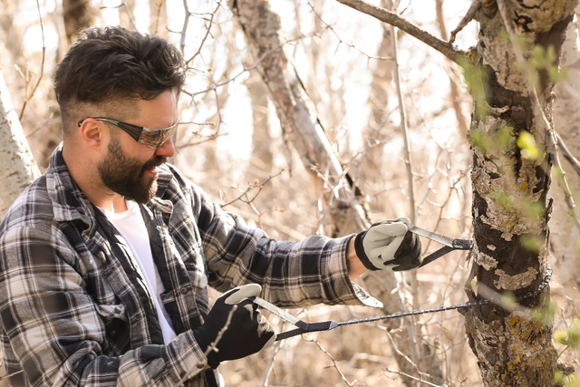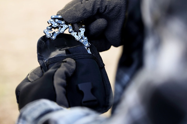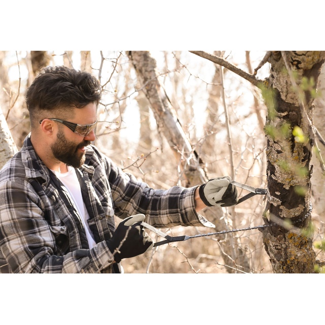 The Coghlan's Pocket Chain Saw simplifies wood gathering in the wild. This compact camping tool features a steel chain-link blade with 26 sharp teeth that cut through wood with a back-and-forth motion. The saw cuts in both directions, and the polyester wrist straps provide comfort and security. This pocket chain saw includes a nylon storage pouch with a belt loop for convenience.