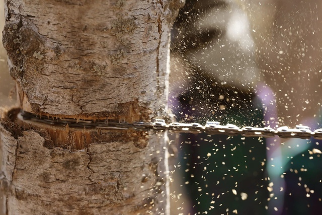 Steel chain-link blade with 26 sharp teeth cuts wood easily in both forward and backward directions