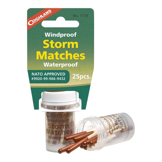 Coghlan's Windproof and Waterproof Storm Matches are designed to ignite reliably in even the harshest weather conditions. These matches burn even when wet, making them essential for camping and outdoor adventures. With long-burning match heads that withstand wind and water immersion for up to 10 seconds and a durable container with extra strike surfaces, you can start a fire no matter the conditions when you have Coghlan's Storm matches.