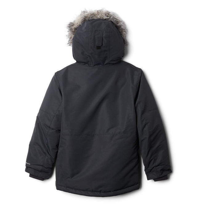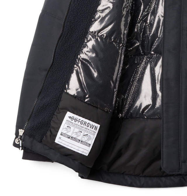 The Columbia Boys' Nordic Strider II Insulated Jacket is designed to keep your child warm and dry. Waterproof and thermally insulated, it features a Sherpa-lined hood and a removable faux fur trim for added warmth and style. With the OUTGROWN™ system, the cuffs extend as your child grows, ensuring a lasting fit.