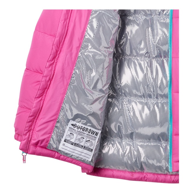 Keep them warm and cozy with the Columbia Girls' Pike Lake Puffer Jacket. Designed to trap heat with Omni-Heat™ thermal reflectivity and 100% recycled insulation, it ensures warmth in cold weather. Featuring an adjustable hood, zippered hand pockets, and elastic cuffs, it offers both comfort and protection.
