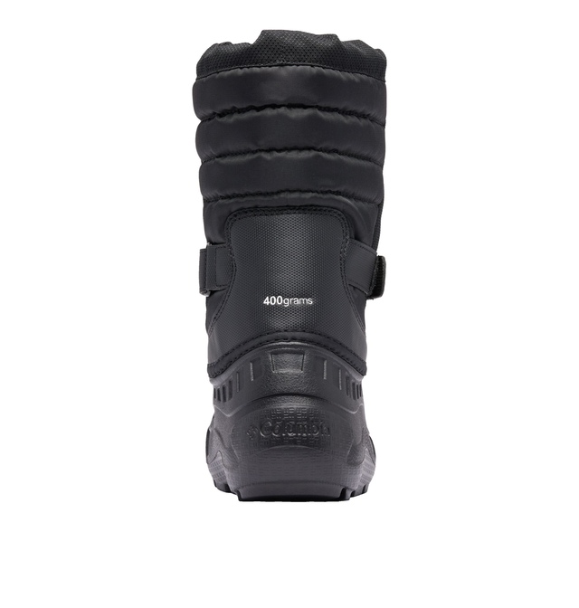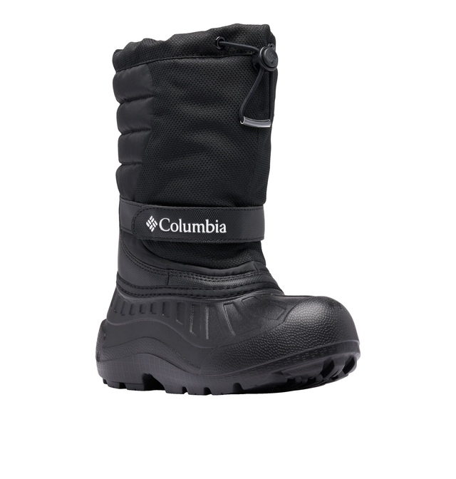 The Columbia Kids' Powderbug Snowlite Winter Boots feature a waterproof and windproof Techlite EVA shell with 400g insulation. The anti-wicking textile upper has a secure and adjustable elasticized strap with a Velcro closure. Blocking out snow with a cinch drawcord at the top, these boots have warm removable felt liners which can be washed easily. The kid's boots have a lightweight yet rugged construction for all-season wear.