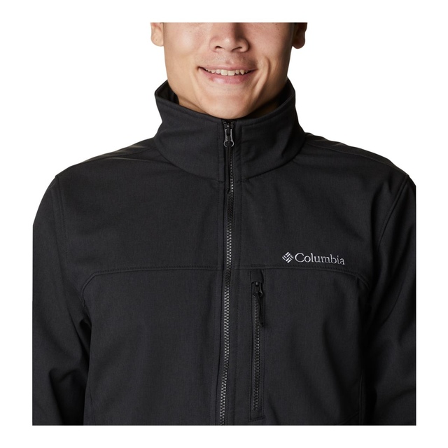 The Columbia Men's Cruiser Valley Softshell Durable Water-Resistant Jacket provides comfort and coverage from town to trail. This jacket has multiple pockets and adjusts at the hem and cuffs to seal the elements out. With a classic shape, the softshell jacket tailored for versatile movement and is a stylish choice for both casual wear and outdoor adventures.
