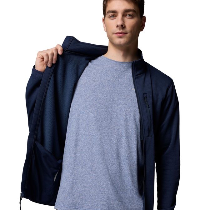 The Columbia Men's Essential Hike Full Zip Grid Long Sleeve Top offers exceptional warmth and moisture management with Omni-Wick™ technology, ensuring you stay dry and comfortable. It features a secure fit with stretch binding at the collar, cuffs, and hem, and zippered pockets for your essentials.