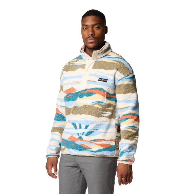 The Columbia Men's Helvetia™ Snap Fleece Top is a plush pullover crafted from cozy Sherpa fleece fabric that delivers luxurious warmth.