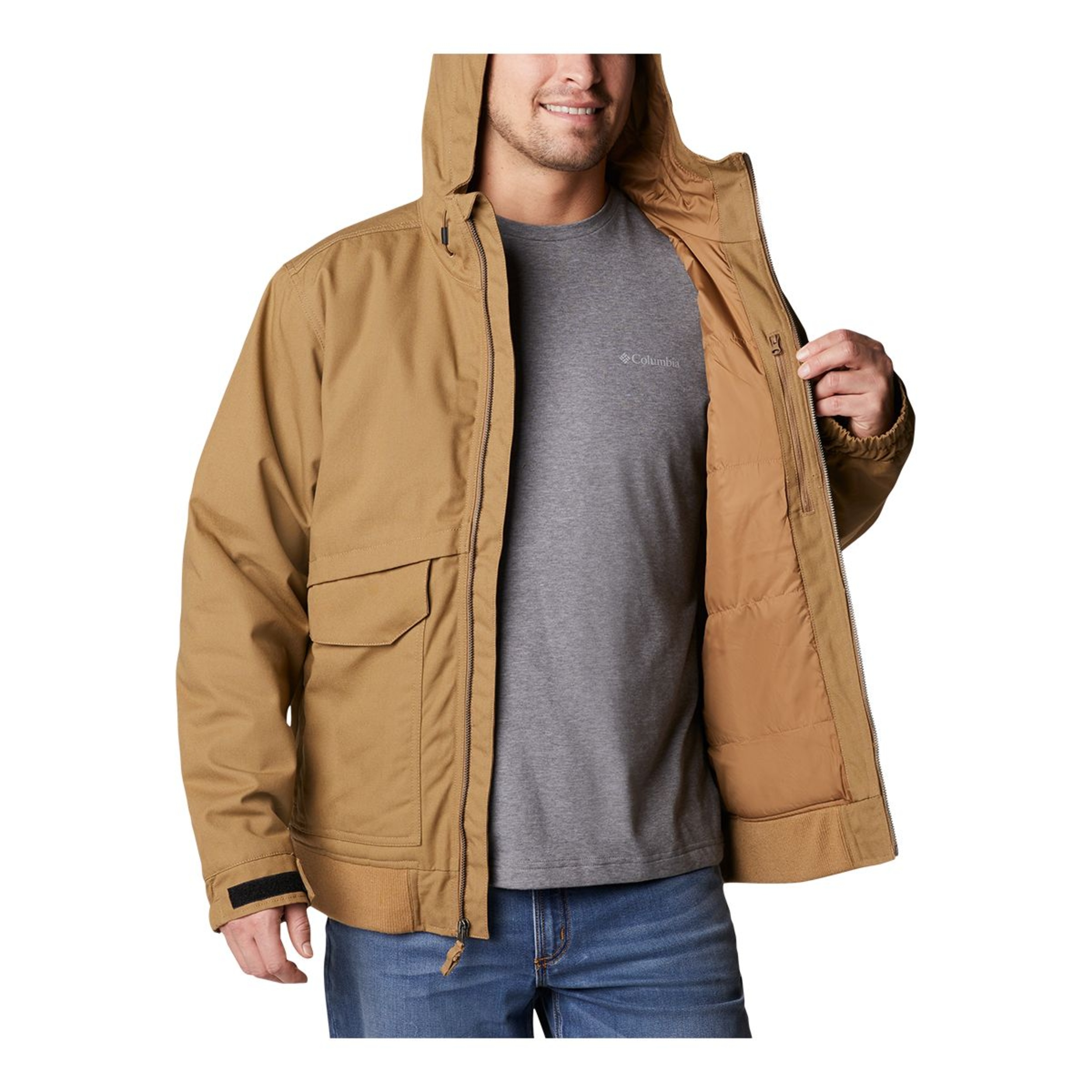 The Columbia Men's Loma Vista™ II Hooded Insulated Water-Resistant Jacket packs a warm punch thanks to its cozy fleece lining. This hooded jacket is made from a durable cotton-canvas blend and filled with 100g of Microtemp XF insulation for low-bulk warmth. Keep small essentials secure with zipped pockets at the chest and hands. The soft interior lining of this fleece jacket and its regular fit design allow for comfortable layering and free movement.
