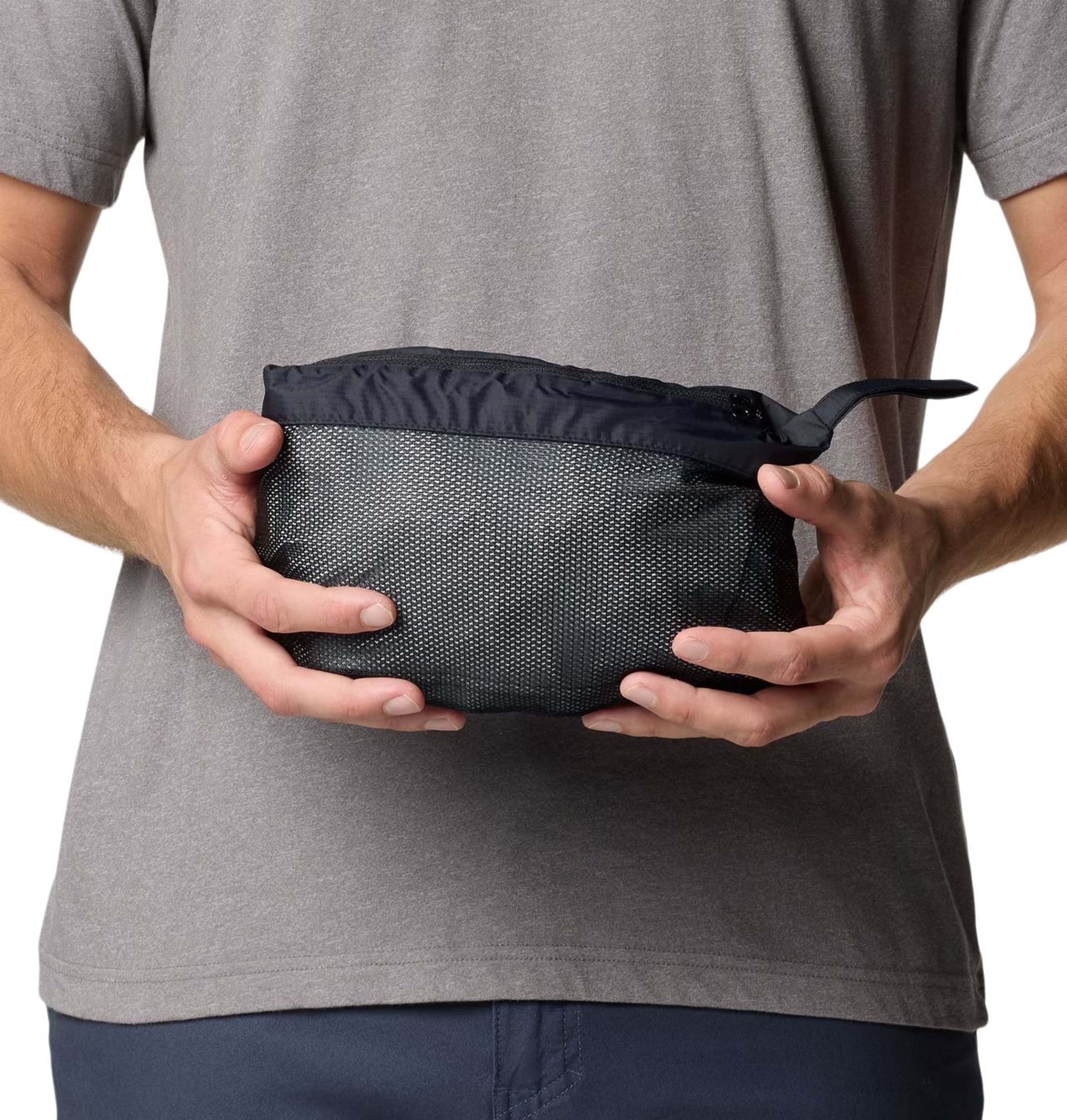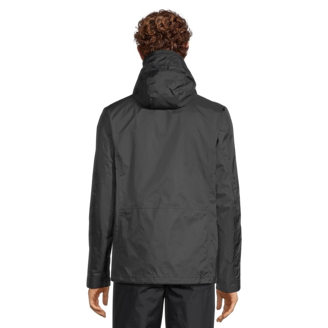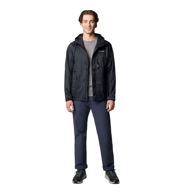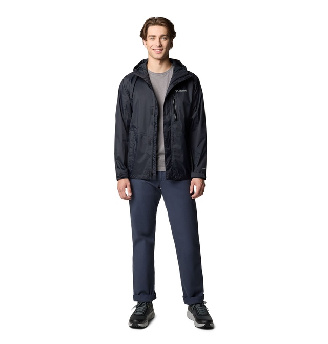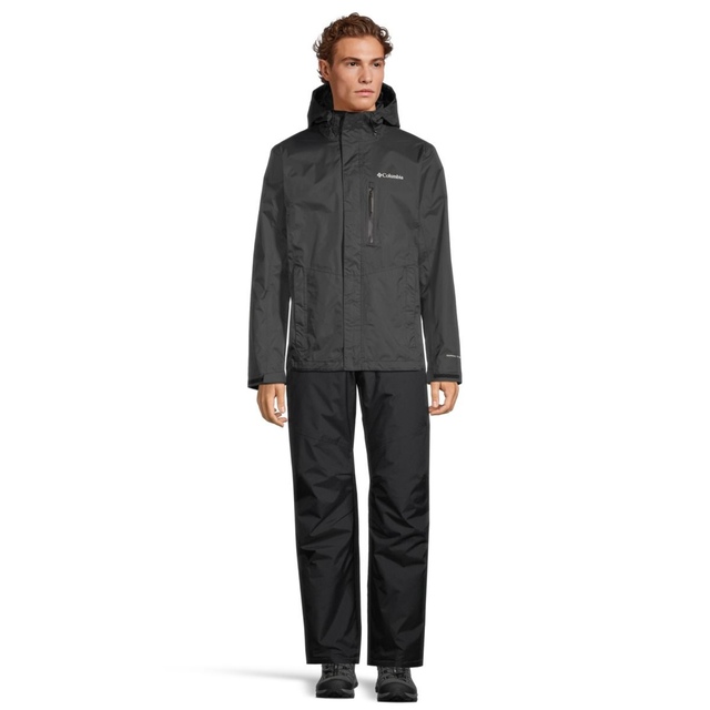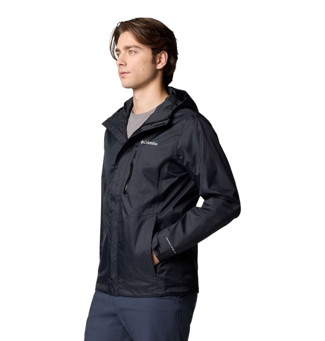 The Columbia Men's Pouring Adventure Rain Jacket is made with Omni-Shield repellency to shed water and resist stains. The adjustable hood and hem let you customize the fit, avoiding wind and rain. Zippered hand pockets and a sleeve pocket provide storage for essentials. A chin guard in this rain jacket improves comfort, making it suitable for outdoor adventures.