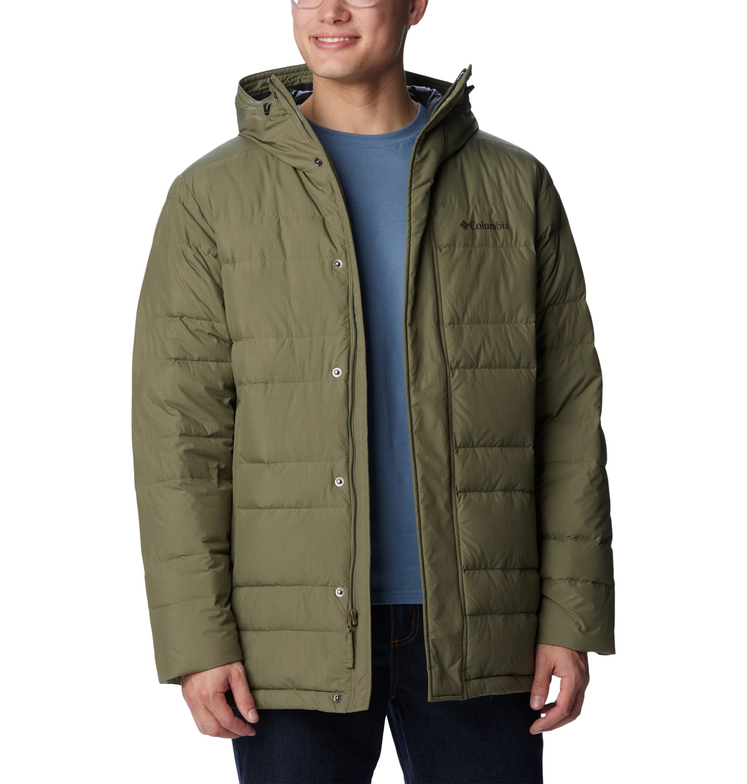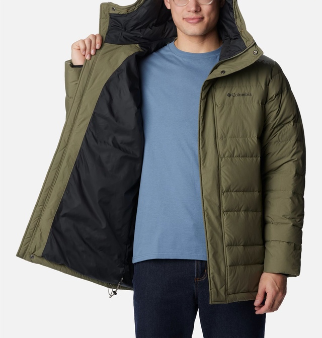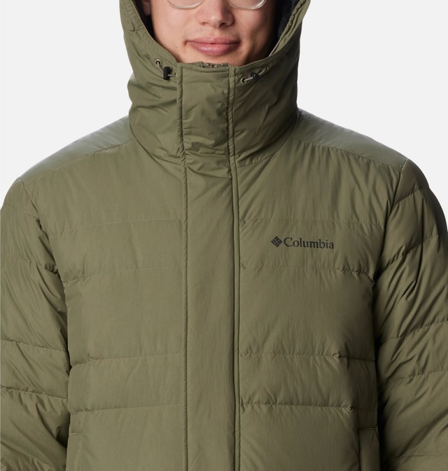 The Columbia Men's Saltzman Down Hooded Jacket provides dependable warmth from responsibly-sourced insulation. Made with water-resistant fabric and filled with 550-fill Responsible Down Standard (RDS) certified down, it keeps you comfortably warm and dry.