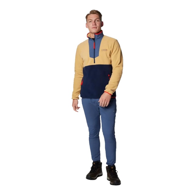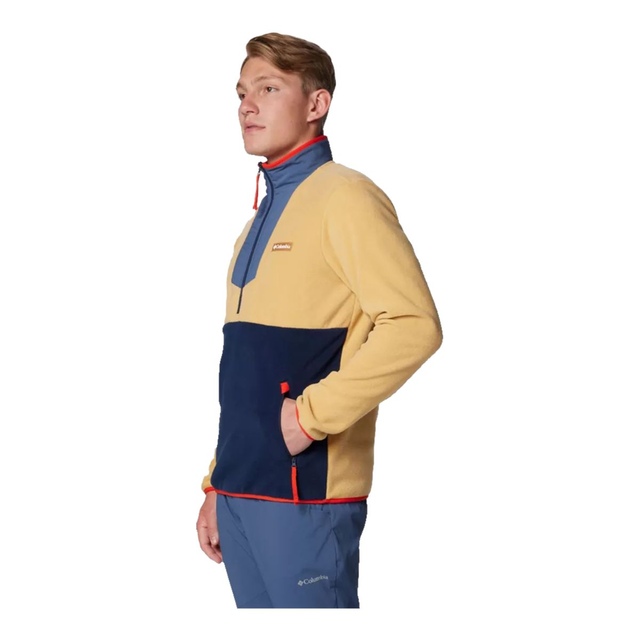 Soft, warm, and sustainable, this Columbia Men's Sequoia Grove Half Zip Fleece Top is made with extra-cozy 100% recycled fleece. Its stretch bindings and durable material deliver comfort and longevity. Made with recycled content, this half zip top is a sustainable choice.