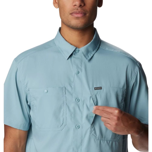 The Columbia Men's Silver Ridge™ Utility Lite T Shirt offers lightweight comfort and performance. Its antimicrobial treatment ensures freshness, while the UPF 50 protection repels the sun's damaging rays. This sleek, casual, button-up design is a versatile choice for outdoor adventures.