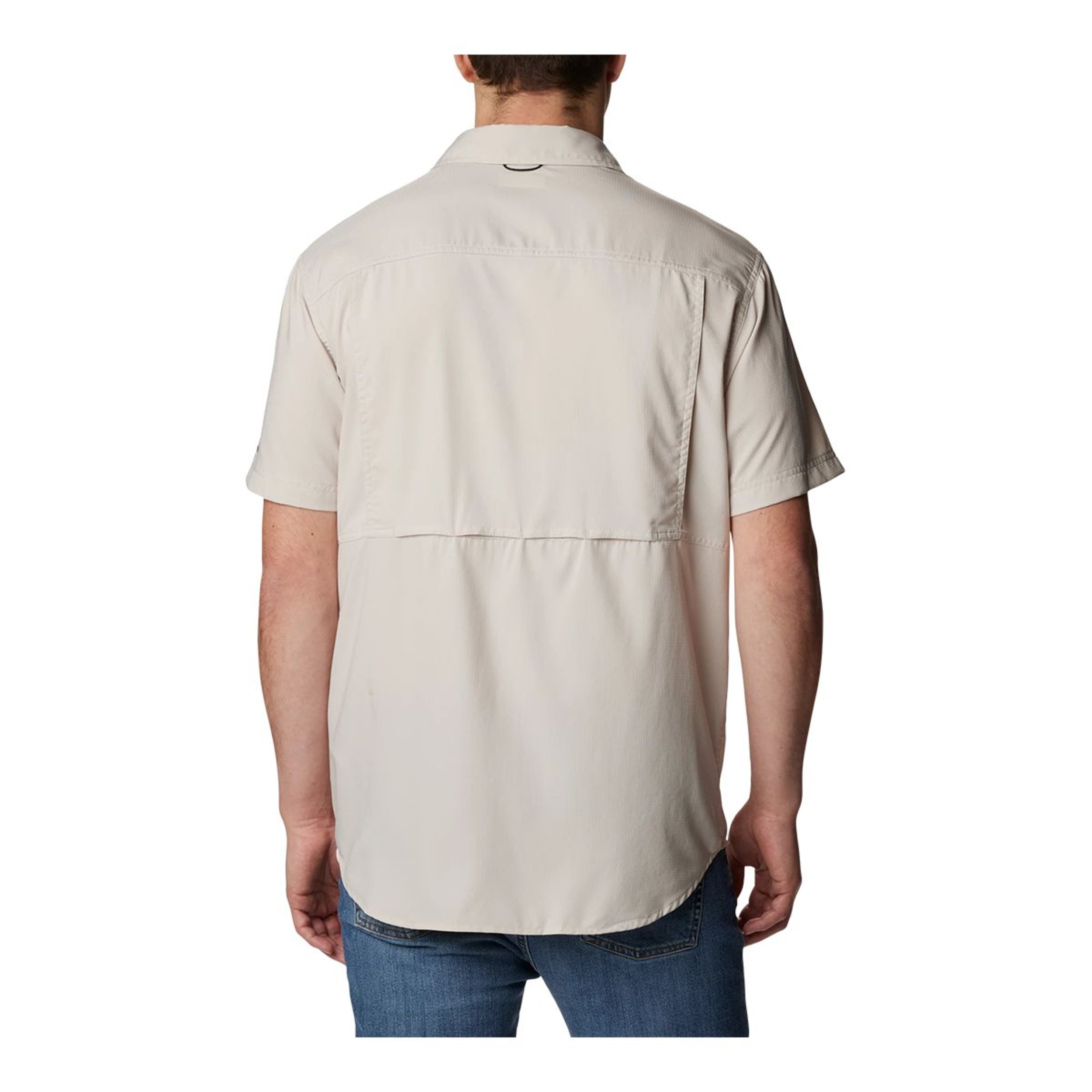 The Columbia Men's Silver Ridge™ Utility Lite T Shirt is lighter and breathable for outdoor adventures. It features UPF 50 sun protection and moisture-wicking technology to keep you comfortable and shielded from UV rays and sweat. This shirt is made with recycled materials and is eco-friendly, functional activewear for men. The antimicrobial odour control ensures freshness, while the chest pockets and ventilation system provide convenient storage and airflow. Stay comfortable and protected with this Columbia T-shirt.