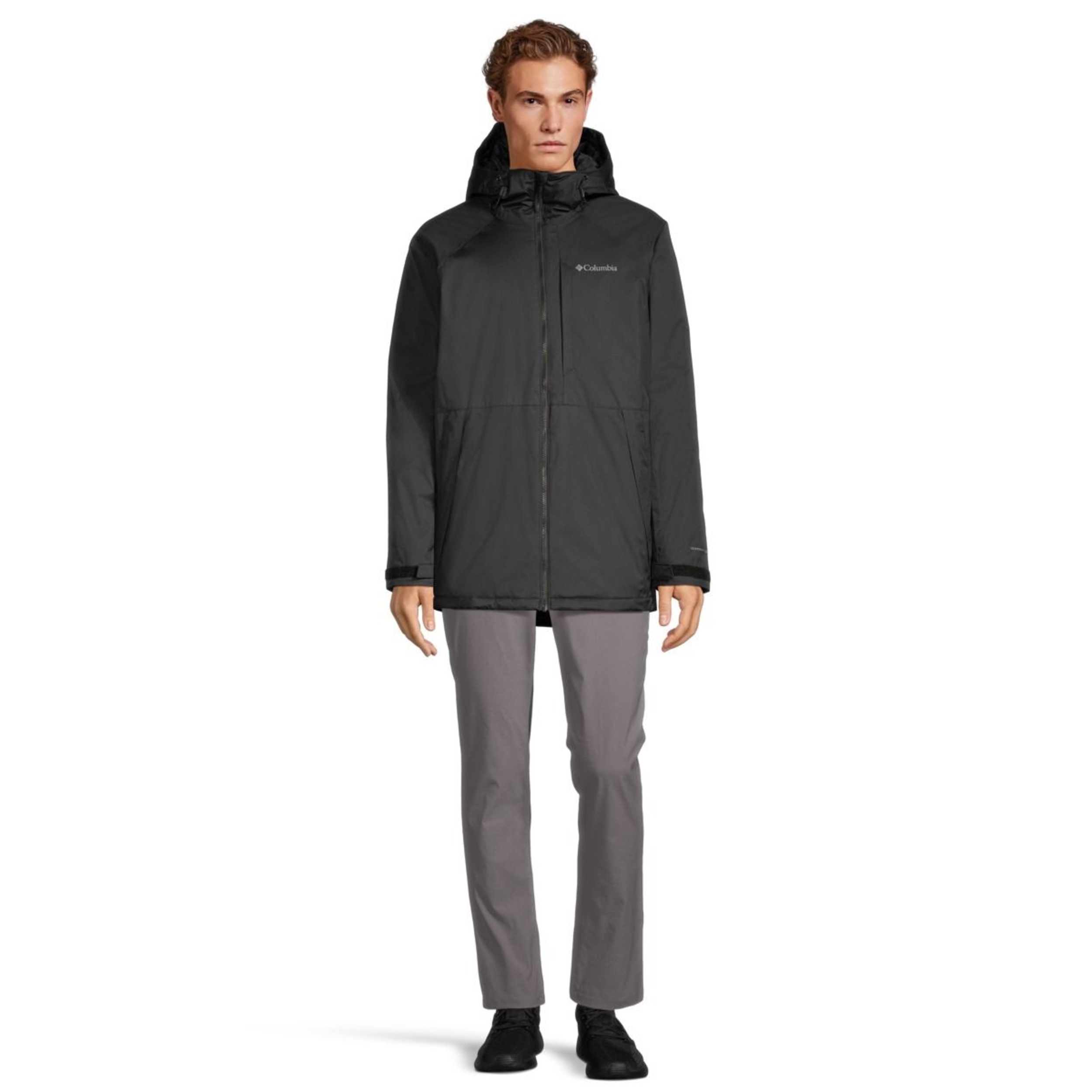 • Drawcord adjustable, helmet-compatible hood seals out the elements