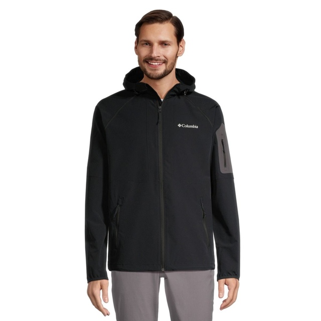 From street to summit, the Columbia Men's Tall Heights™️ Hooded Softshell Adjustable Water-Resistant Jacket offers nonstop comfort and protection while featuring a water-resistant outer shell that fits securely over any added layers. It features arm and hand pockets with zippered closures to keep essentials protected from the elements. A practical choice for adventure, this softshell jacket is great for hiking and outdoor activities.