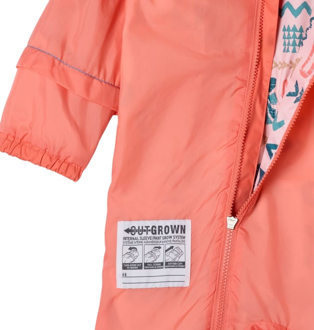 The Columbia Toddler Girls' Critter Jitters™ II Rain Suit is designed to keep your little one dry and comfy in any weather. Featuring Omni-Tech™ waterproof and breathable technology, this fully seam-sealed suit offers superior protection. The Outgrown™ grow system accommodates growth, while elastic cuffs, an adjustable hood, and a cozy fleece lining provide a perfect fit and added warmth.