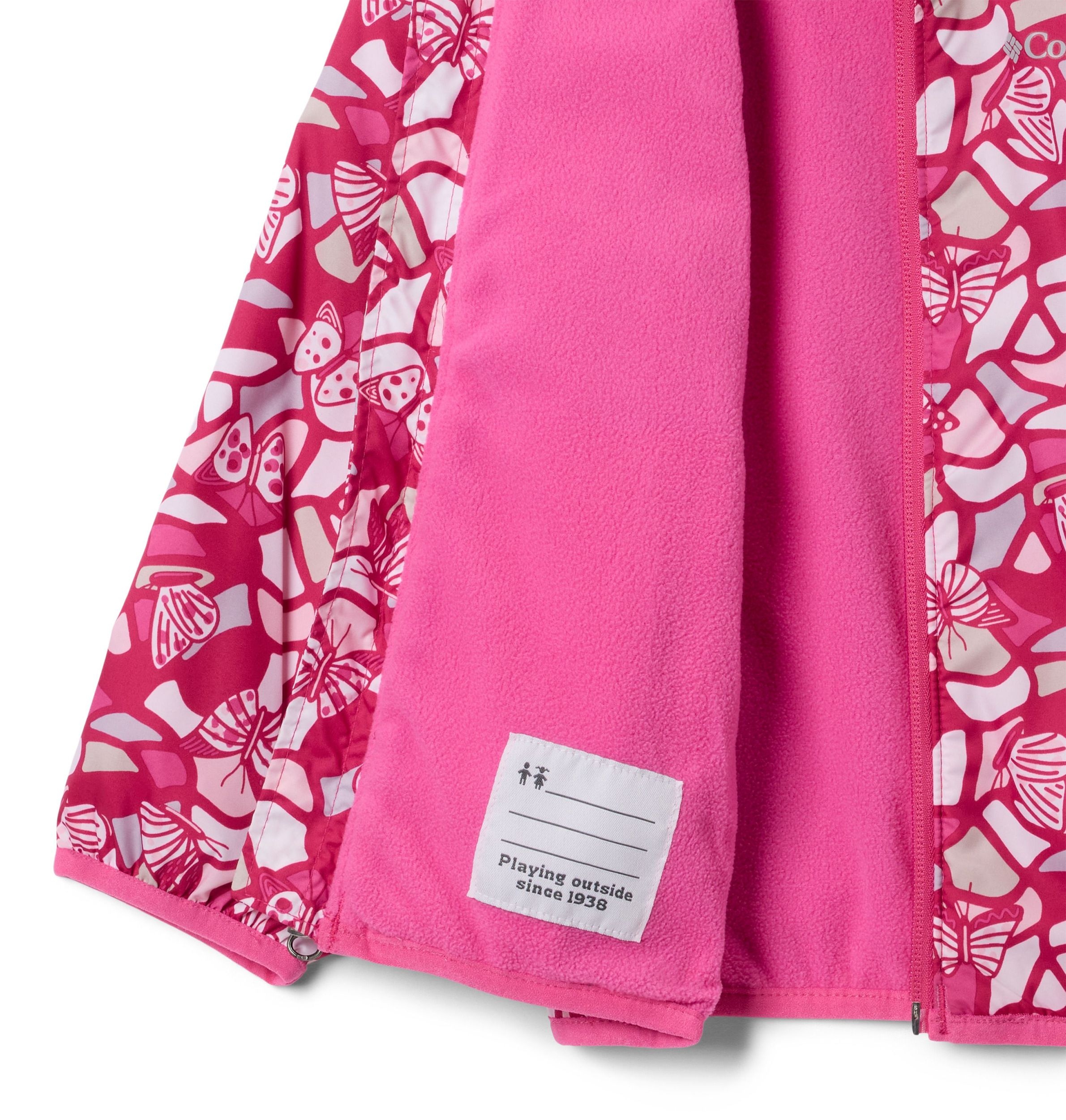 A cozy, fleece-lined windbreaker for kids, featuring a water-resistant exterior in fun prints. Columbia offers this jacket in multiple colours and sizes. Regular fit.