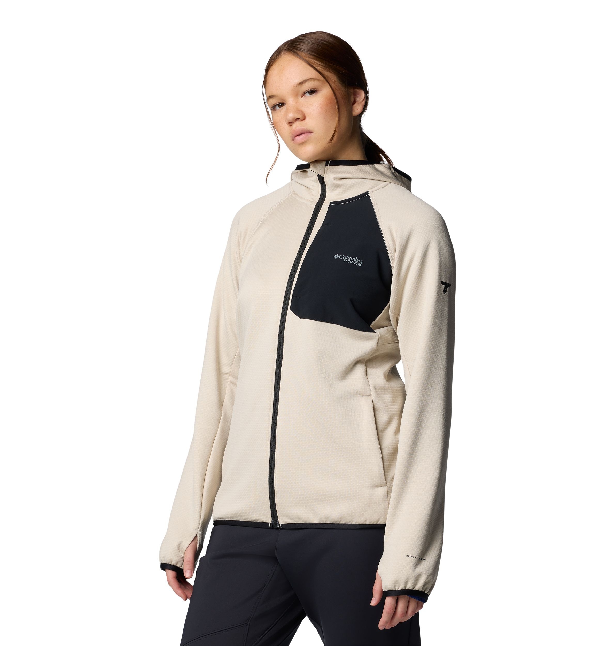 The Columbia Women's 3 Canyon Full Zip Hoodie features Omni-Wick™ technology for effective moisture management during outdoor activities. Multiple pockets, including a zippered chest pocket, provide storage for essentials. This hoodie's design includes thumb holes and stretch binding at key zones for mobility, while flatlock seams prevent friction.