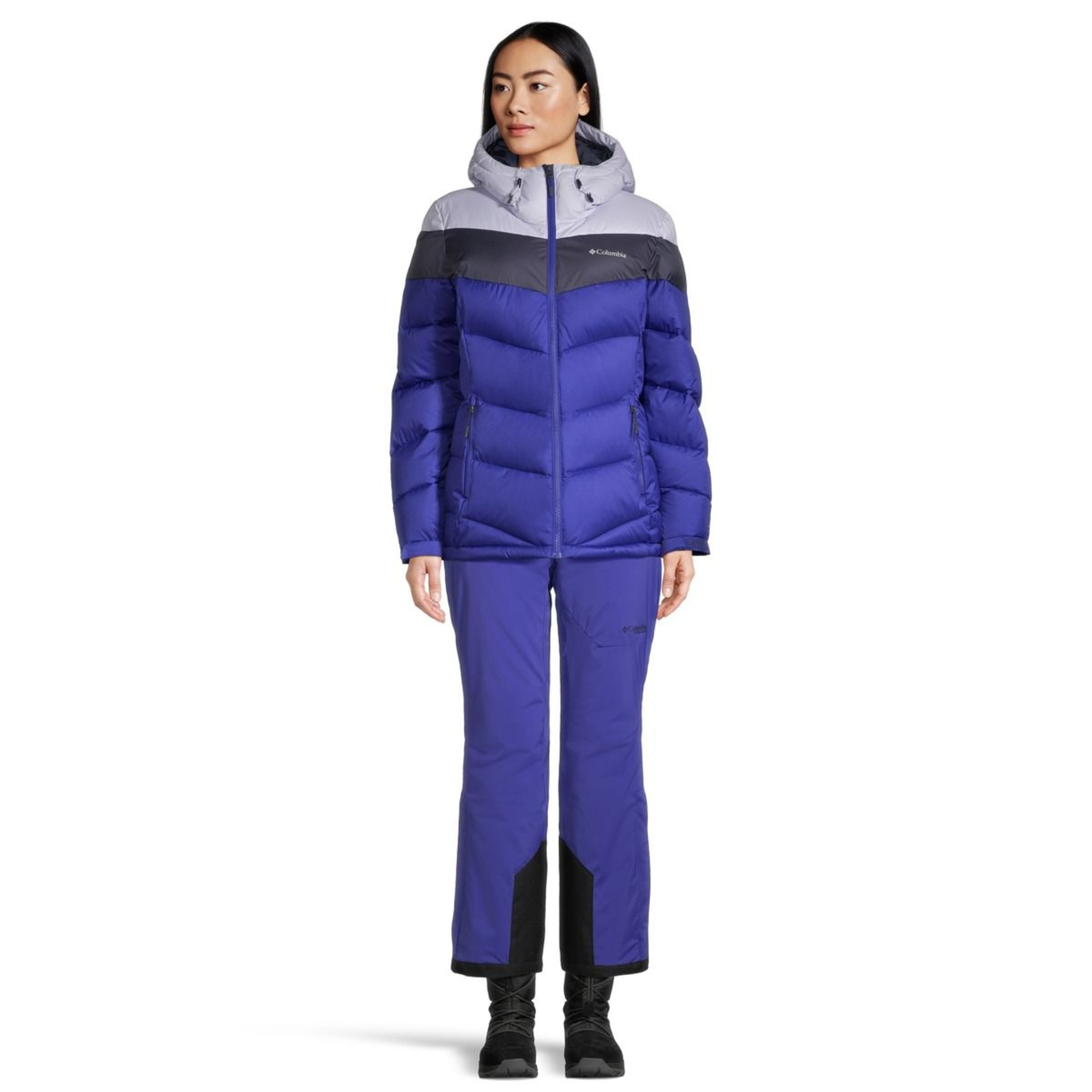 Stand out, stay warm. This Columbia women’s ski jacket is dialed for both, with a thermal-reflective lining and 100% recycled synthetic insulation. If offers a suite of slope-ready features including an adjustable powder skirt, pass and goggle pockets, and an adjustable hood.