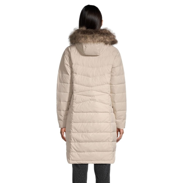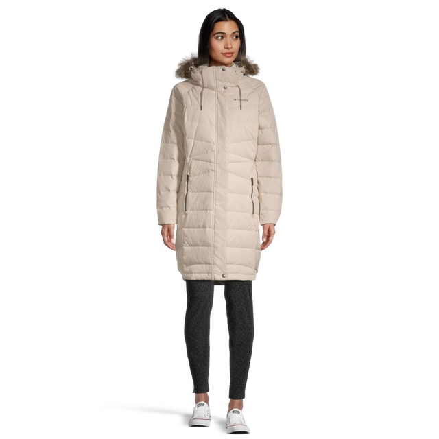 The Columbia Women's Belle Isle II Mid Down Jacket wraps you in premium warmth and protection with responsibly sourced down insulation and advanced Omni-Shield™ water repellent technology. This stylish parka-style puffer features a versatile removable hood, two-way center front zipper for adjustable coverage, and secure interior and zippered hand pockets for essentials. Elastic cuffs help seal in warmth, making it ideal for winter activities.