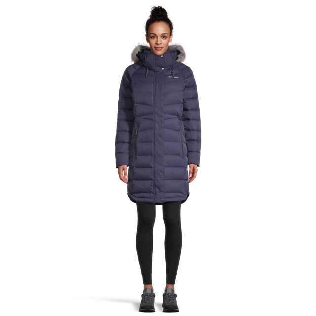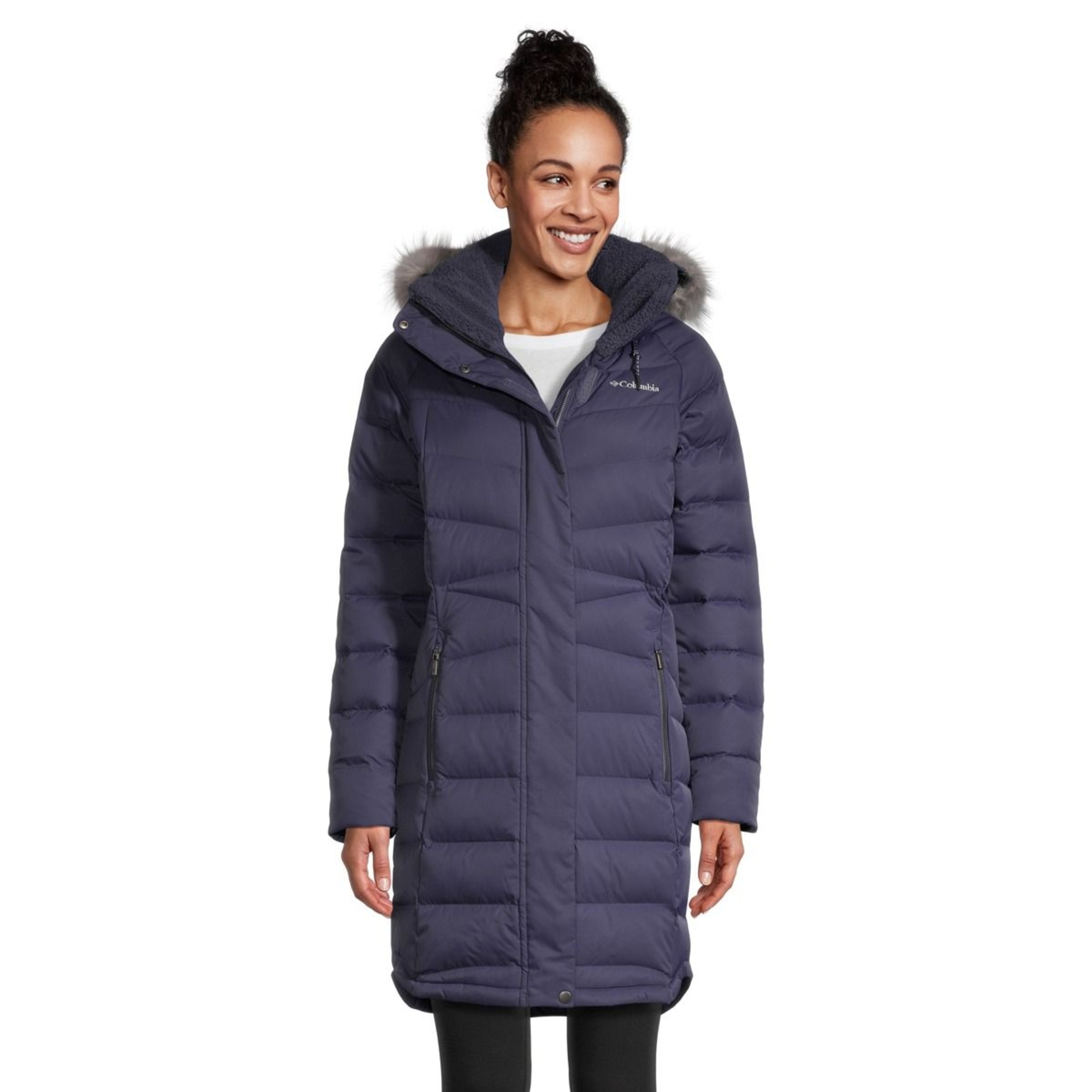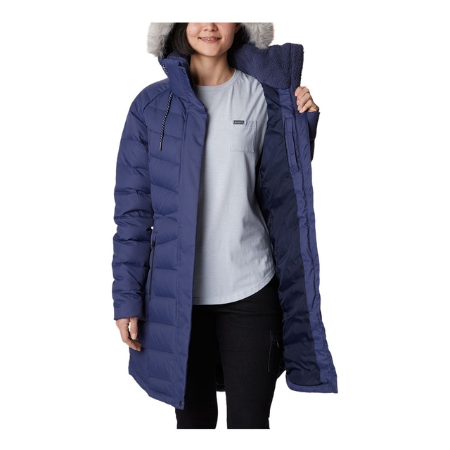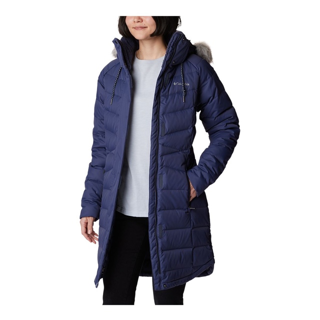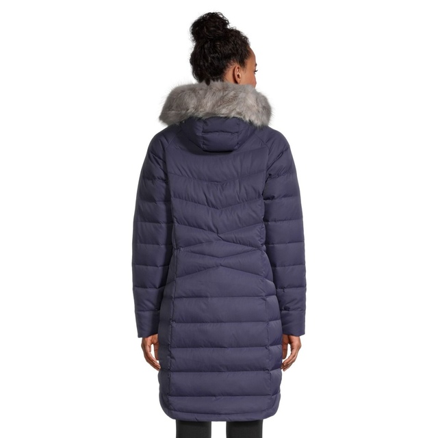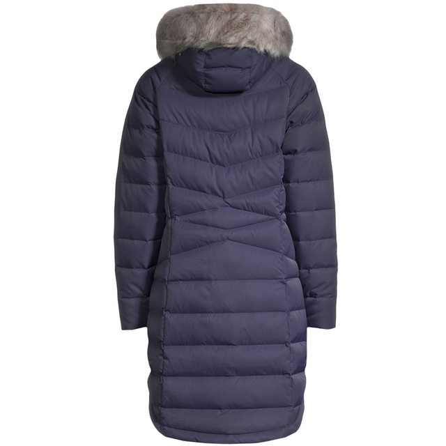 This Columbia Women's Belle Isle Medium Down Jacket, featuring 450-fill RDS certified down insulation and soft faux fur trim, keeps you warm and stylish. A removable, adjustable hood and two-way front zipper offer versatility, while an extra pocket provides secure phone storage for those cold days. This down jacket is perfect for keeping you comfortable and looking fashionable during chilly weather.