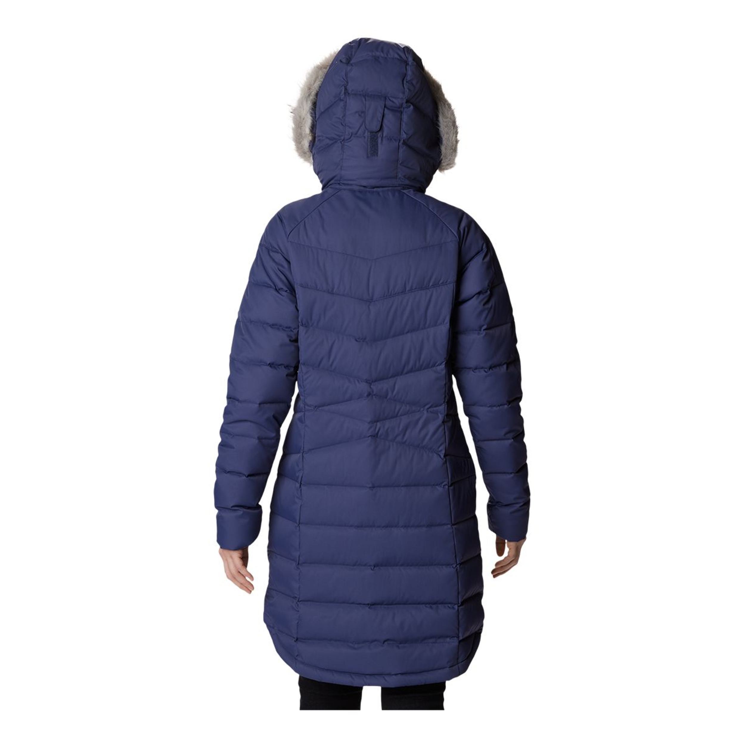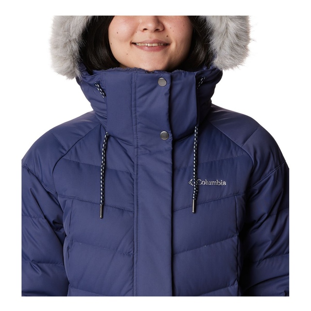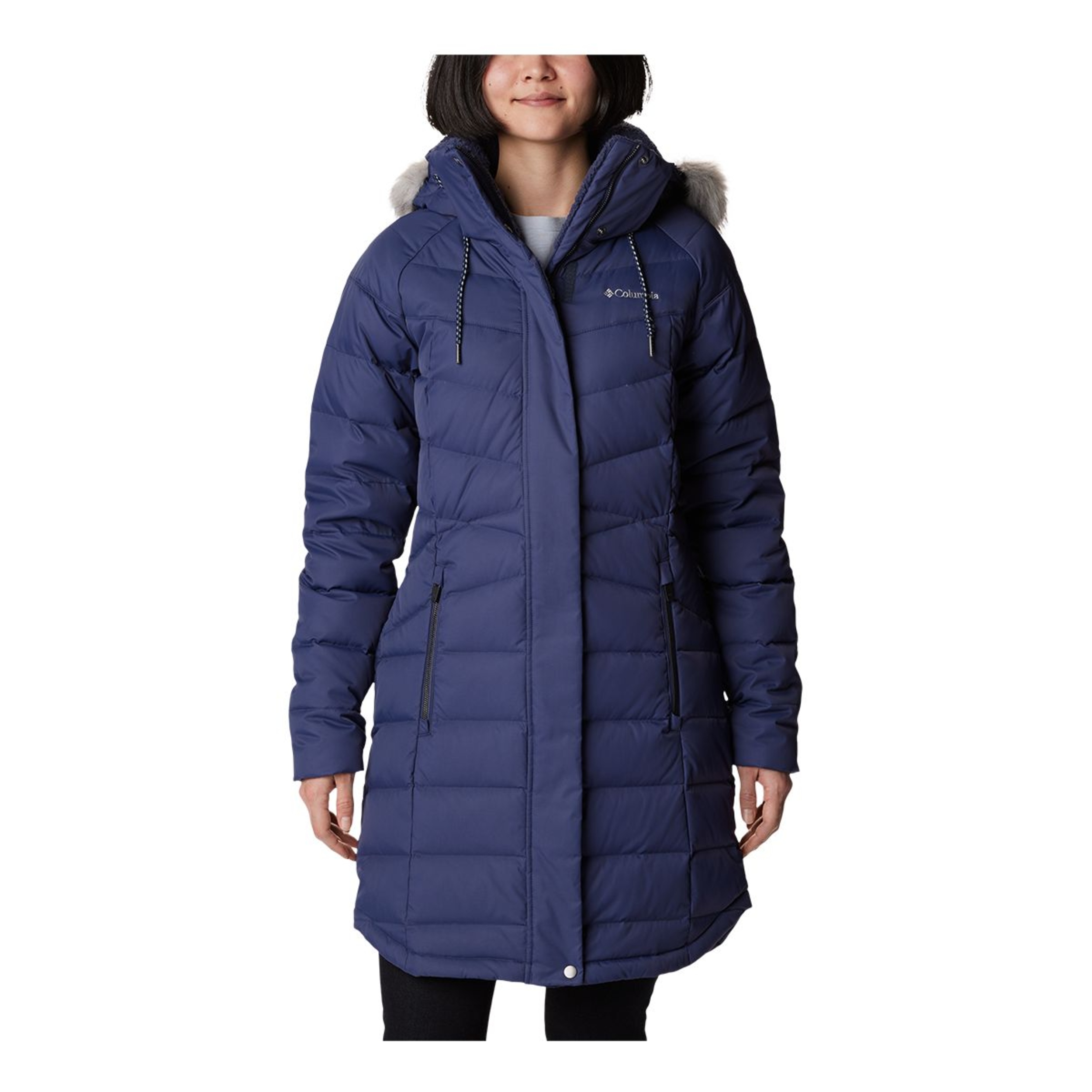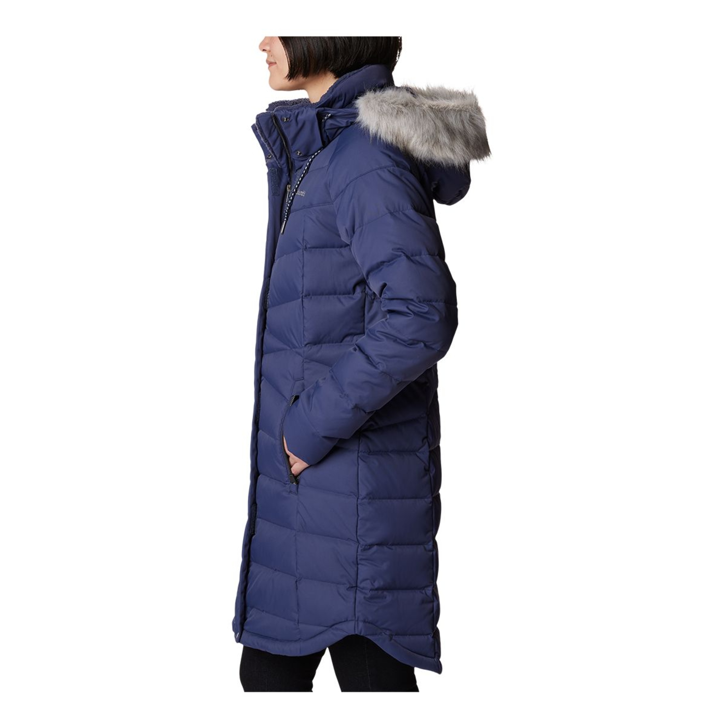 This Columbia Women's Belle Isle Medium Down Jacket, featuring 450-fill RDS certified down insulation and soft faux fur trim, keeps you warm and stylish. A removable, adjustable hood and two-way front zipper offer versatility, while an extra pocket provides secure phone storage for those cold days. This down jacket is perfect for keeping you comfortable and looking fashionable during chilly weather.