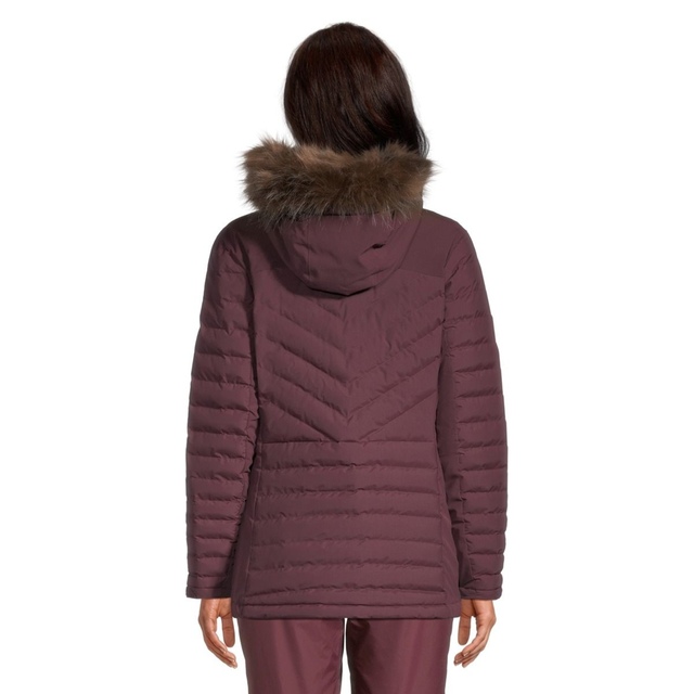 Helmet-compatible hood with removable fur trim provides customizable warmth and coverage