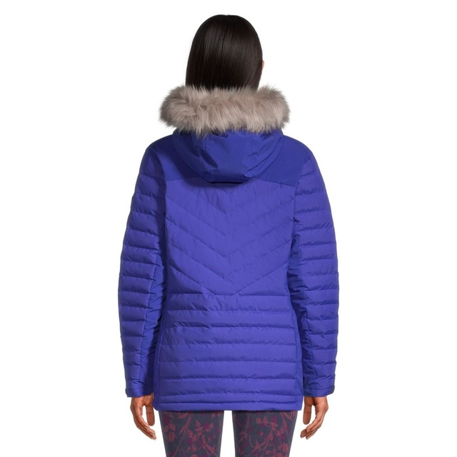 Take the sting out of chilly mountain days with this waterproof insulated jacket. It combines stretchy recycled synthetic down and Columbia’s most advanced heat-reflective tech to keep you supremely warm. Stretch fabric allows you to move freely when you're tearing down the slopes, while the helmet-compatible hood, powder skirt, and removable synthetic fur enhance warmth and coziness.