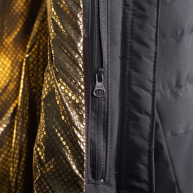 Dedicated pockets for ski pass and goggles offer convenient storage on the slopes
