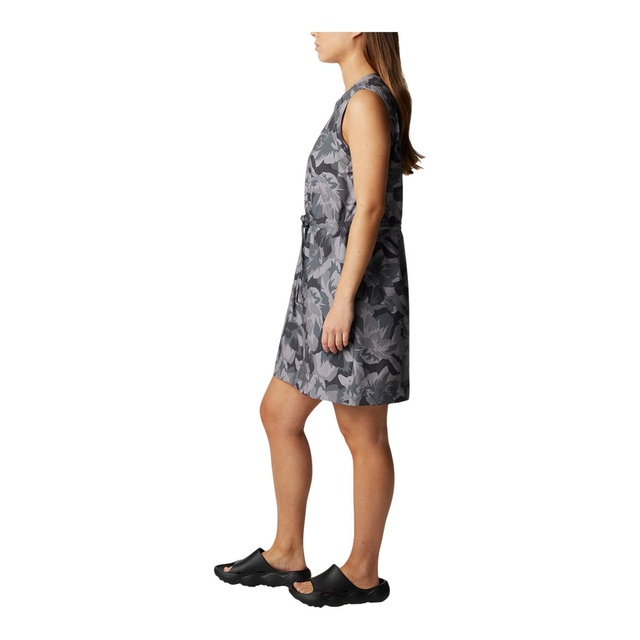 The stylish Columbia Women's Bogata Bay UPF Dress prioritizes comfort. Featuring Omni-Shade™ UPF 50 sun protection and Omni-Shield™ advanced repellency, this dress ensures quick drying and stain resistance. Its two-way comfort stretch, adjustable drawcord waist and keyhole back provide a custom fit with functional style.