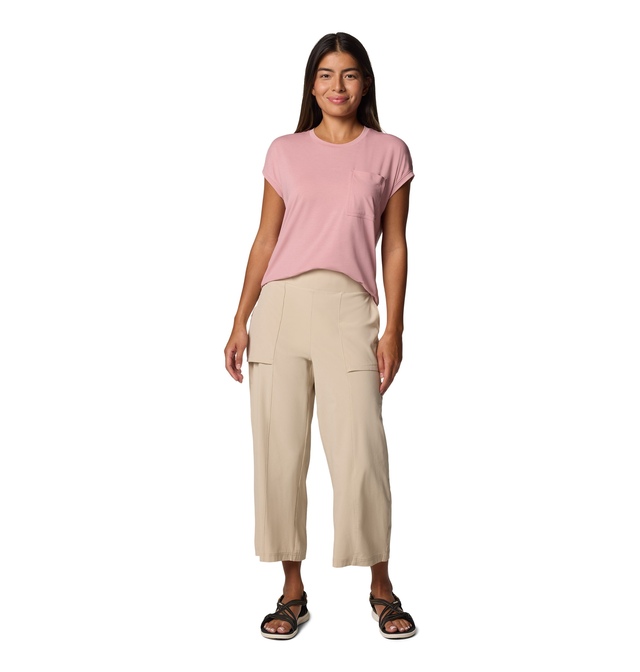 The Columbia Women's Boundless Beauty™ Wide Capris are designed for versatile wear. With UPF 30 sun protection, they resist water and stains, while their lightweight, stretchy fabric ensures comfort and ease.